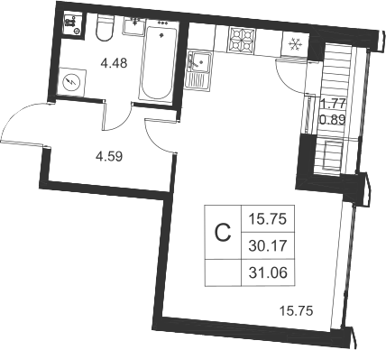 Общая площадь 31 м2