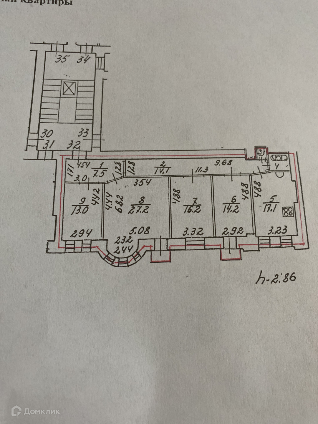 Высота потолков 2.86 м