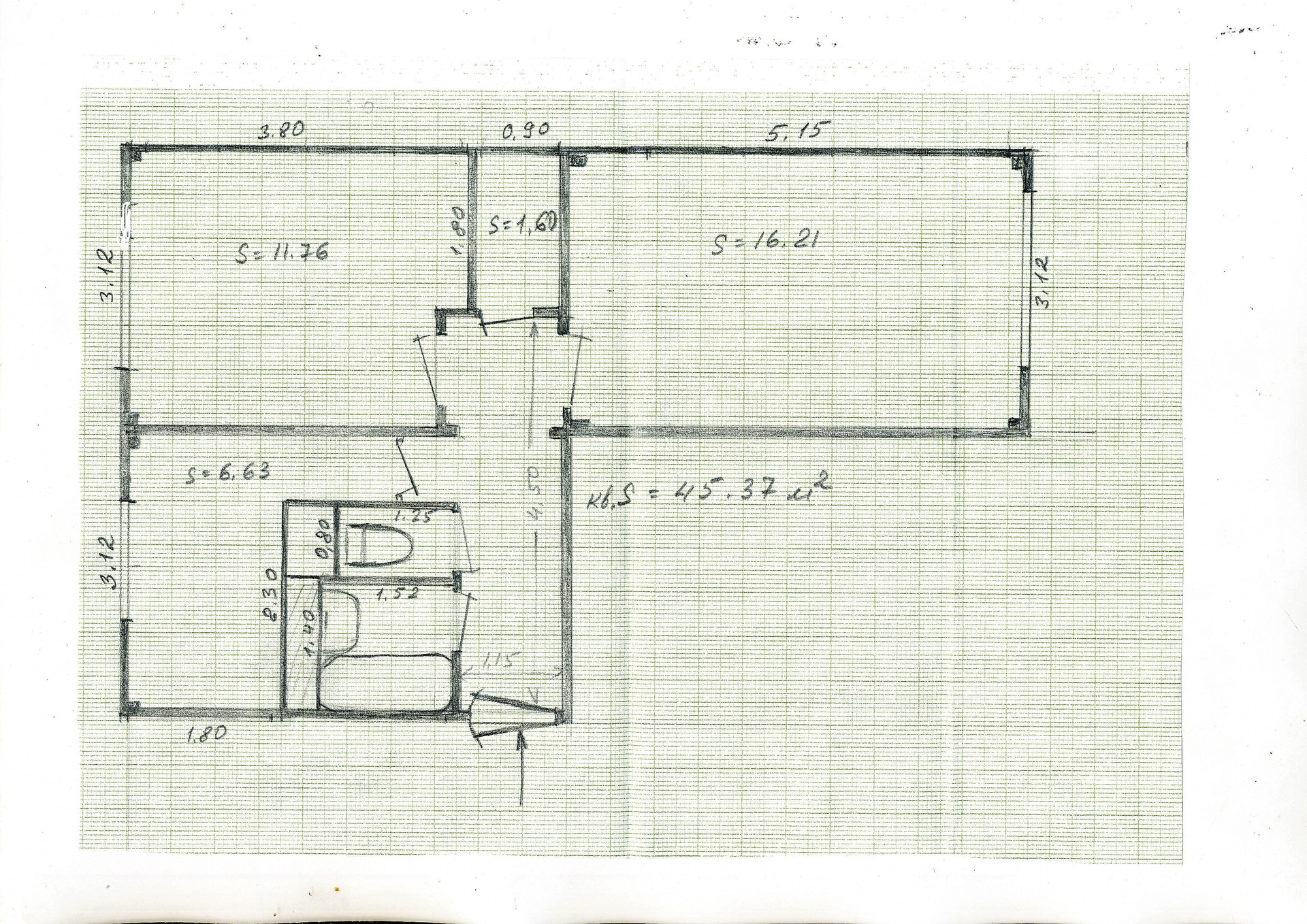Общая площадь 45.37 м2