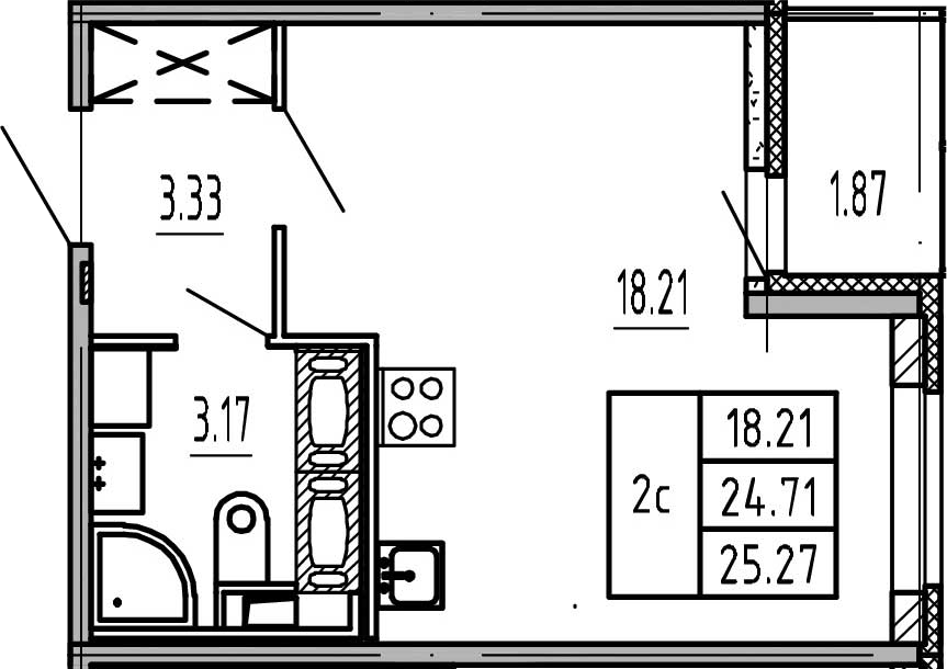 Общая площадь 25.27 м2