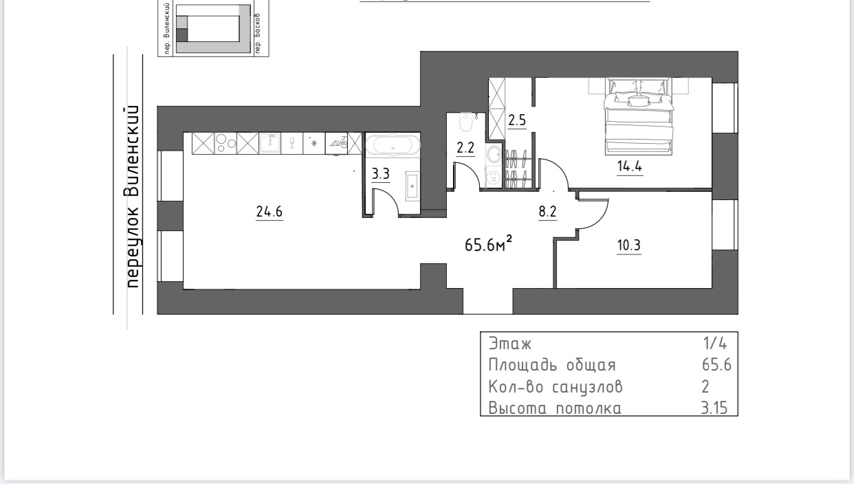 Общая площадь 65.6 м2