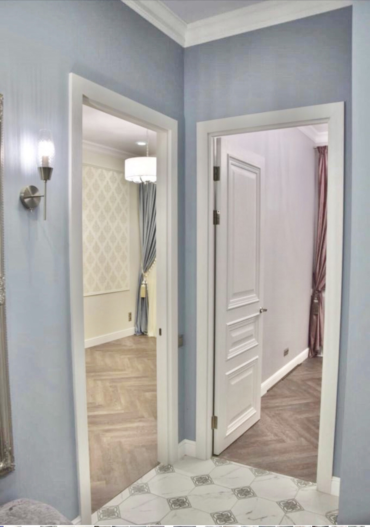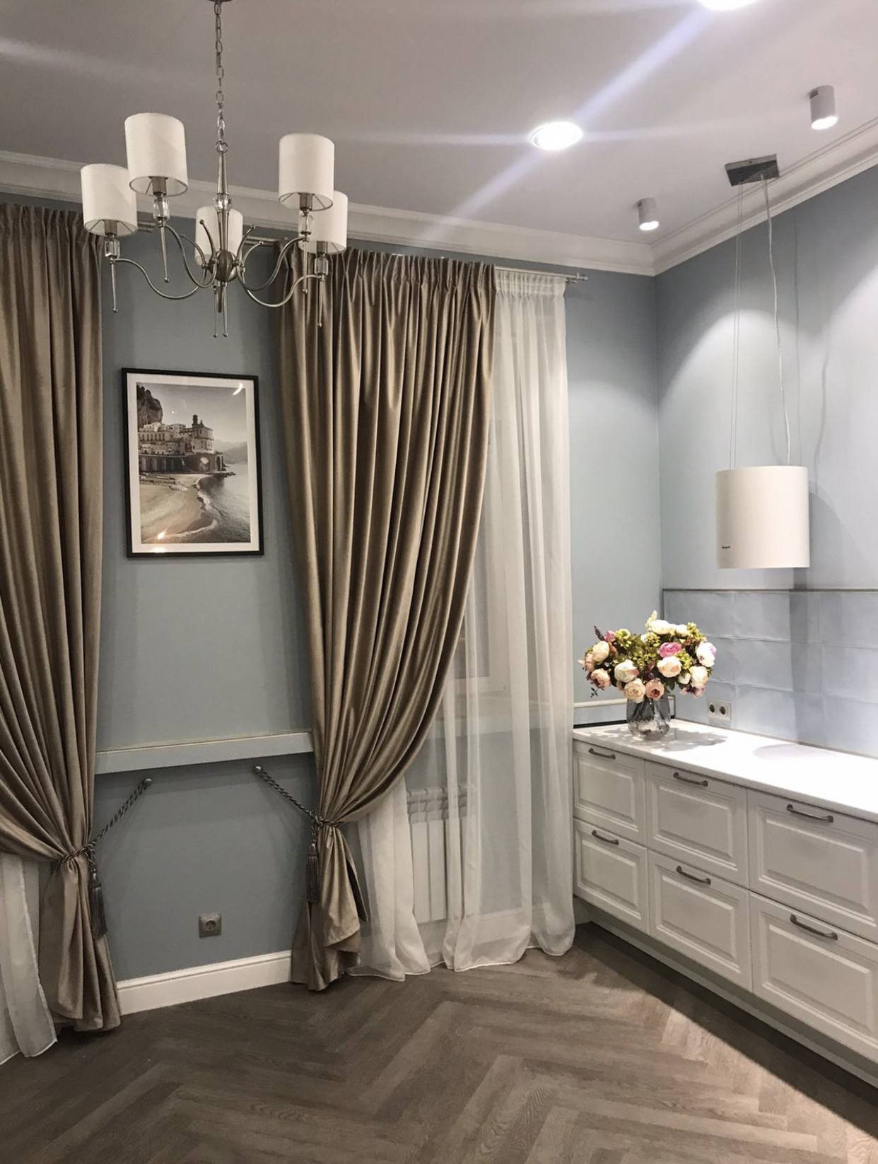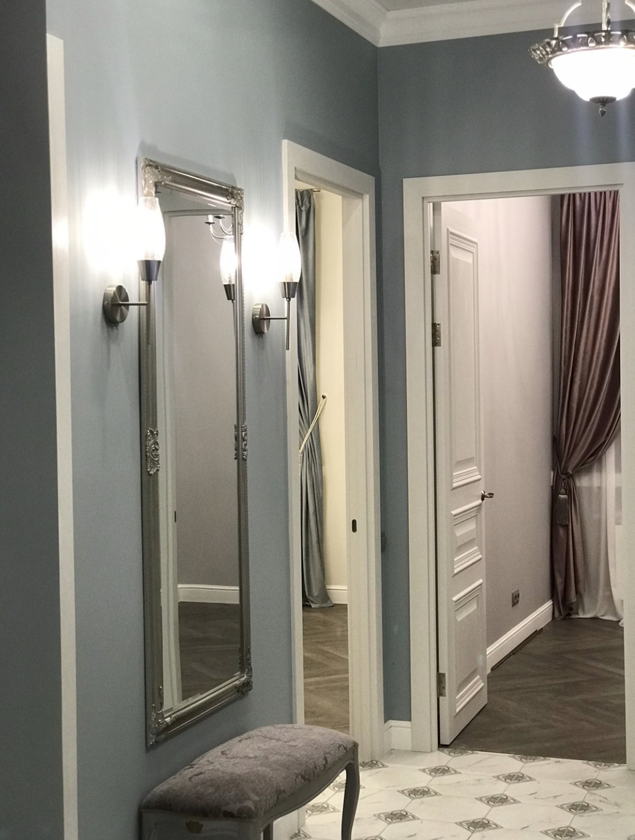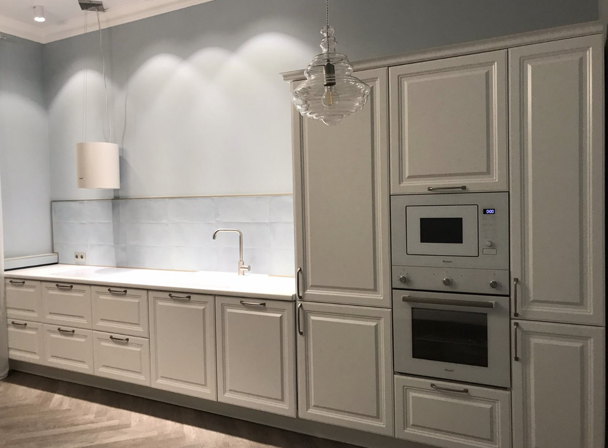 Ремонт  выполнен по дизайн-проекту в  неоклассическом стиле. В светлых тонах.