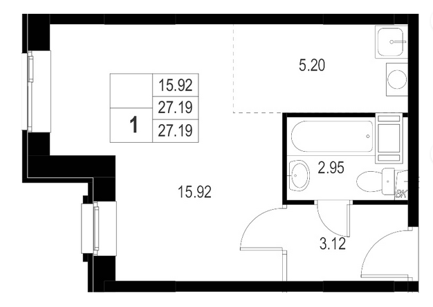 Общая площадь 27.19 м2