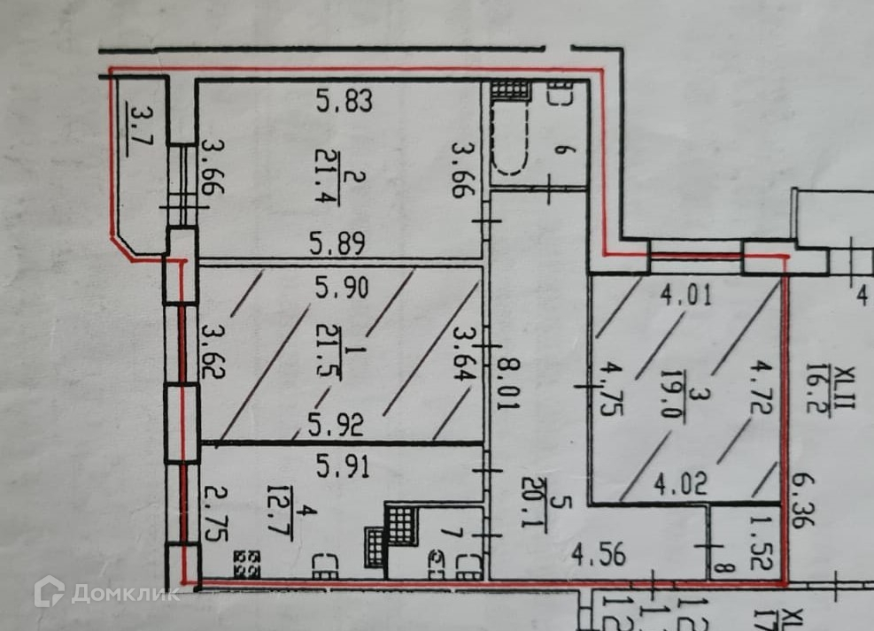 Жилая площадь 61.9 м2