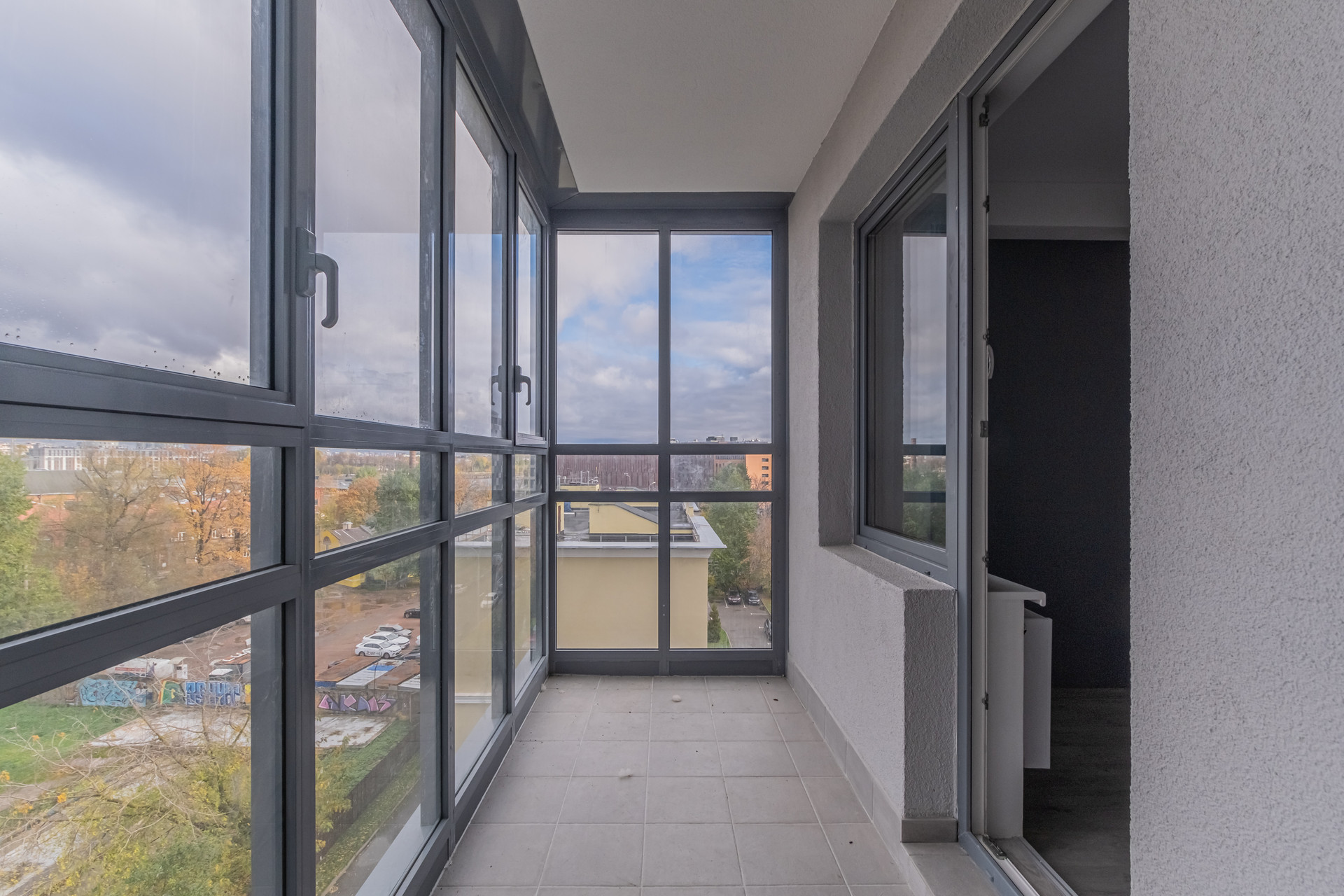 Окна выходят на две стороны дома, есть два просторных полностью застекленных балкона.
