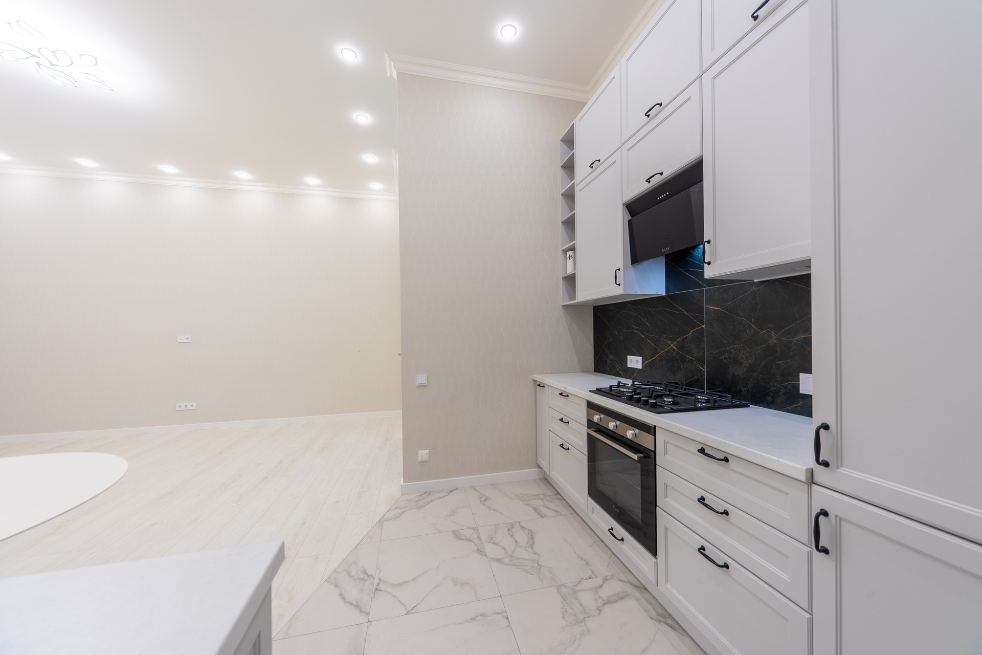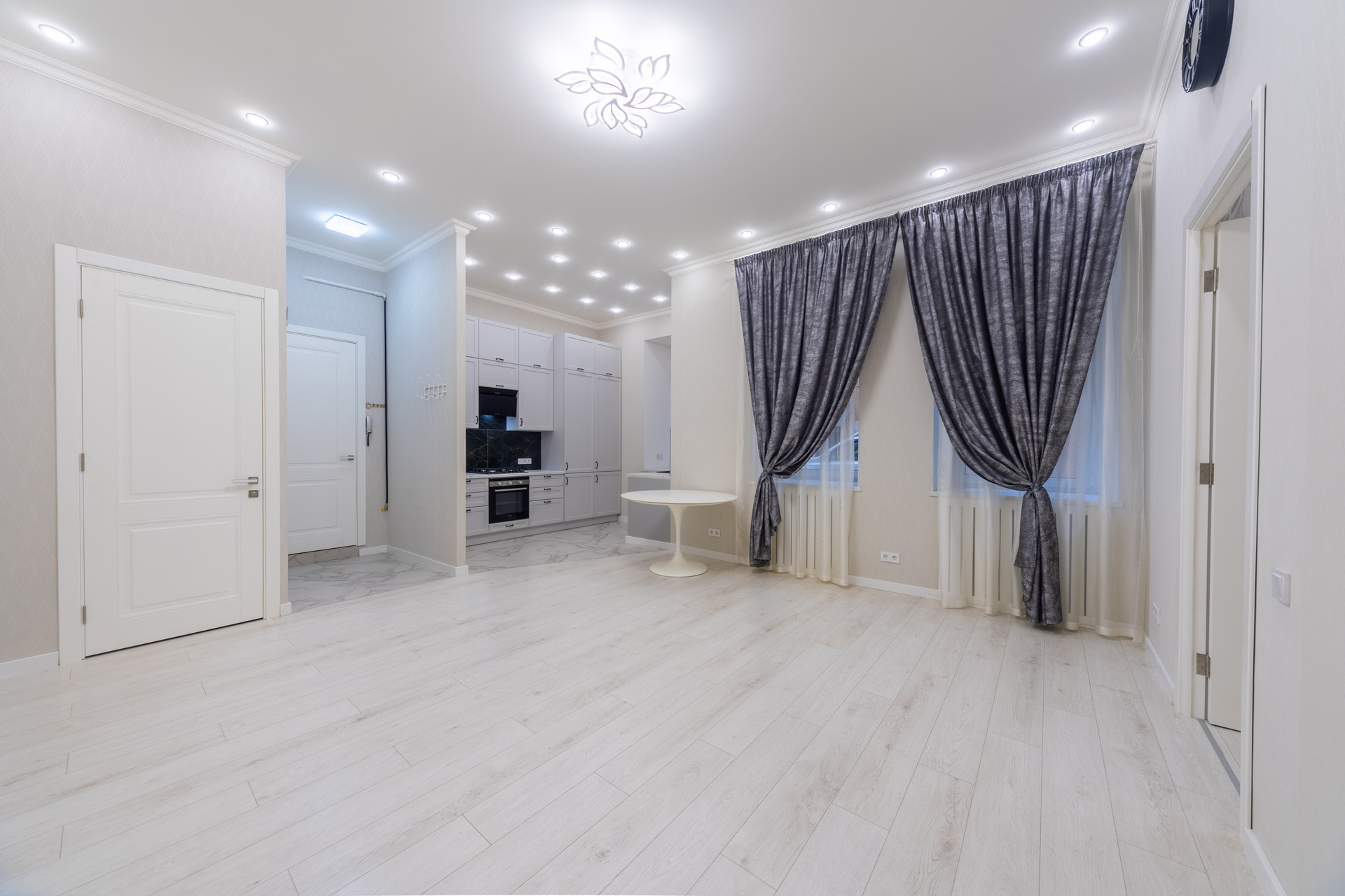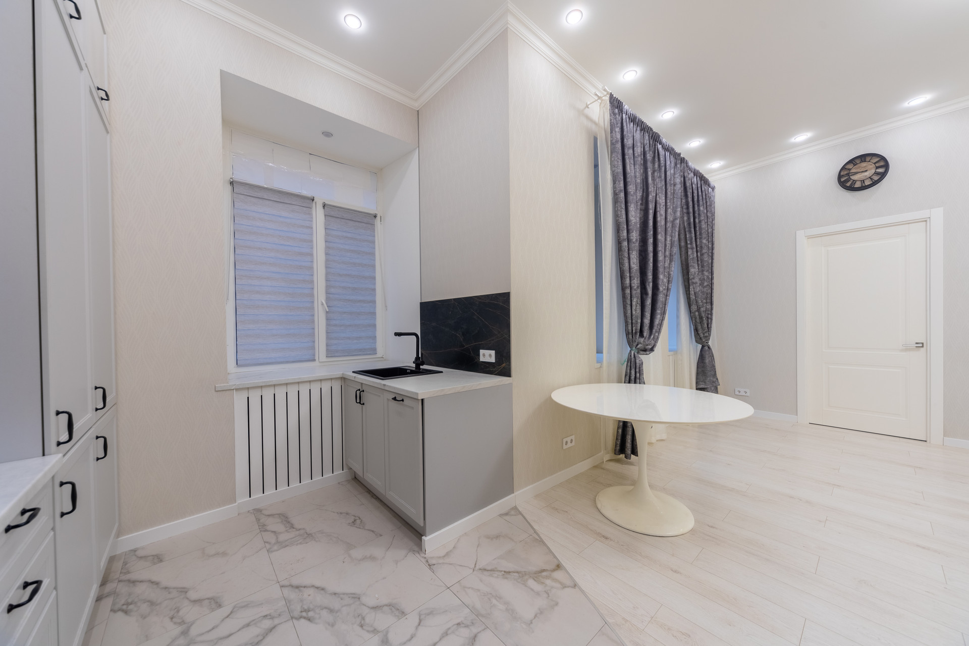 Дизайнерский ремонт. Дом: материал стен - кирпич, этаж - 1, этажность - 7. Кухня-гостиная - 25 кв. м. Спальня - 25 кв. м. 2 санузла, потолки - 3.5 м., 4 окна. Капитальный ремонт дома на стадии завершения.