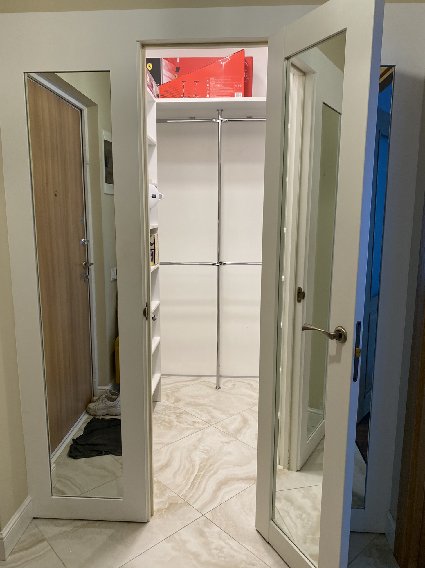 Тёплый пол на лоджии, в коридоре+гардеробная, на кухне.