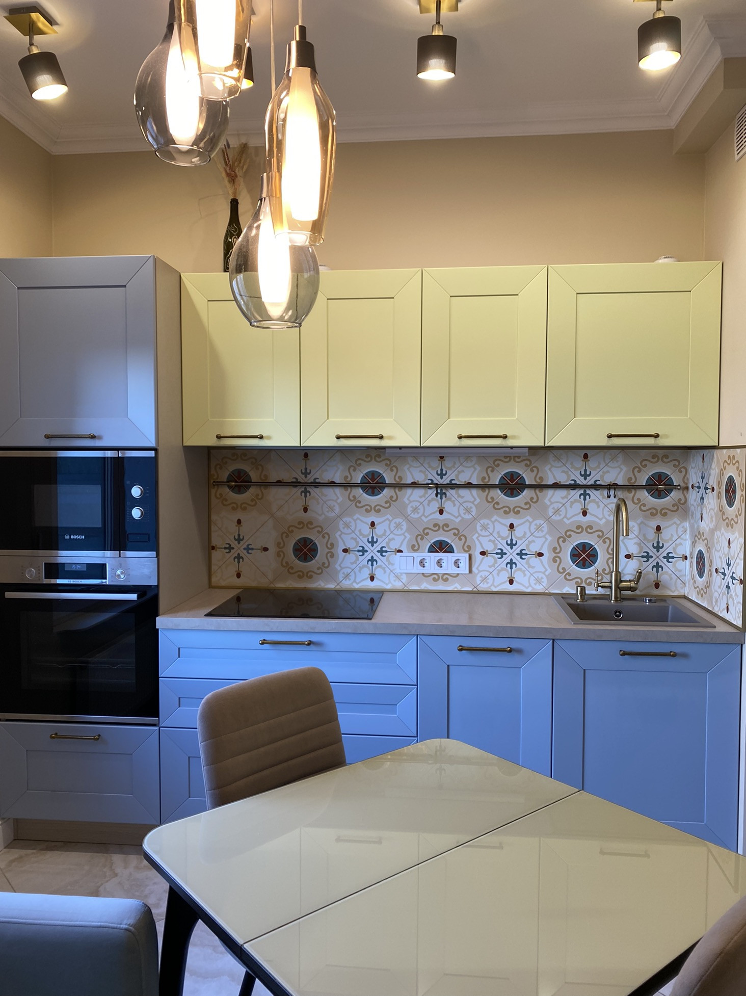 Встроенная техника - плита, духовка, холодильник, посудомойка, микроволновка.