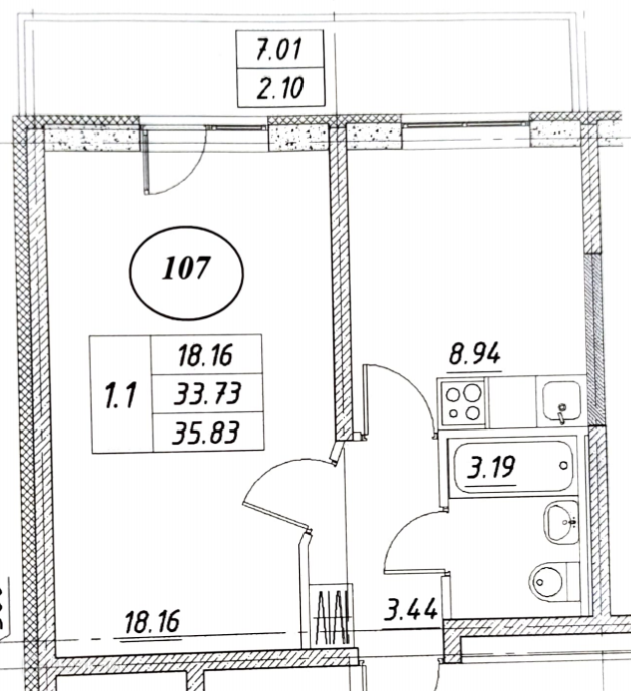 Общая площадь 35.83 м2