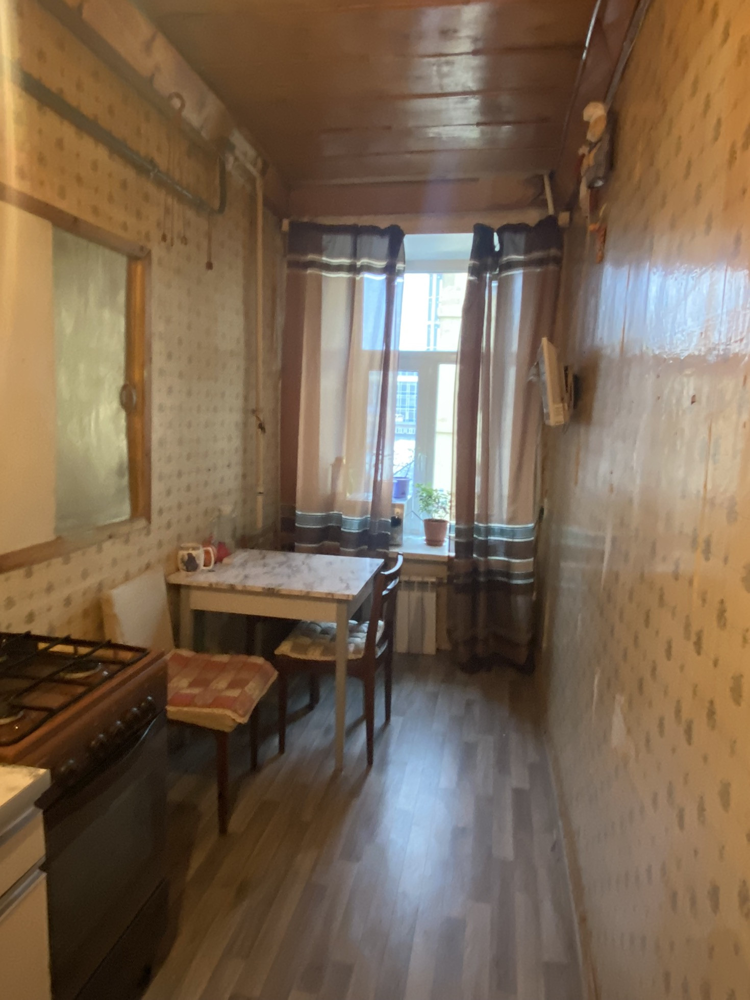 Высота потолков 2.69м. Можно увеличить высоту за счет демонтажа полового покрытия.