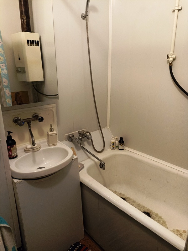 Ванная на кухне в отдельном помещении .Высота потолков 3.17м. Хорошие соседи.