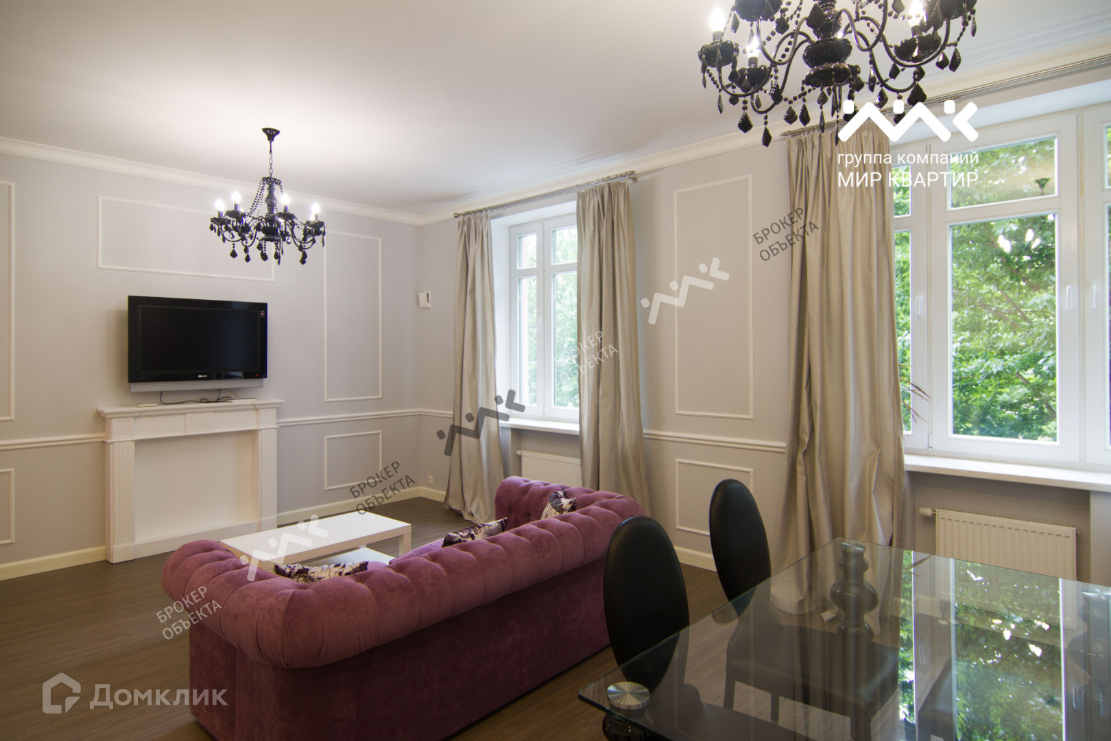 Окна квартиры выходят на красивую улицу Радищева , летом очень много зелени перед окнами