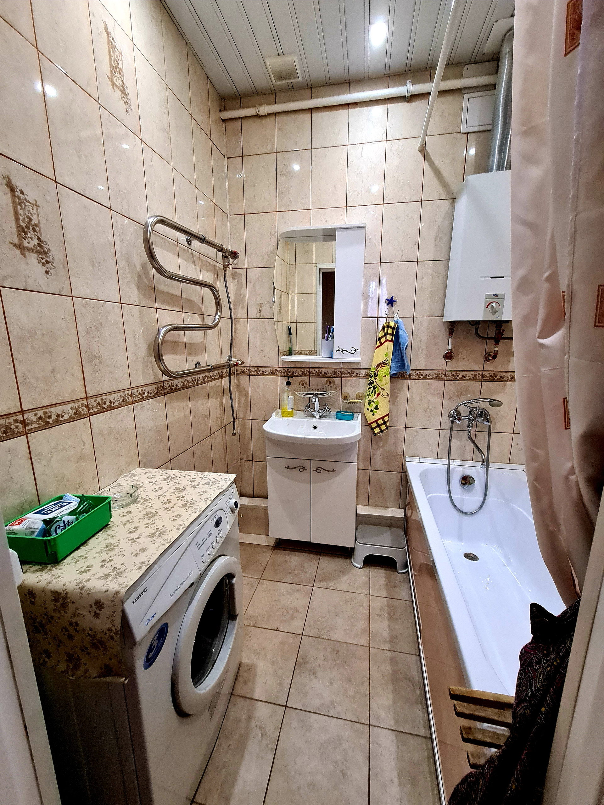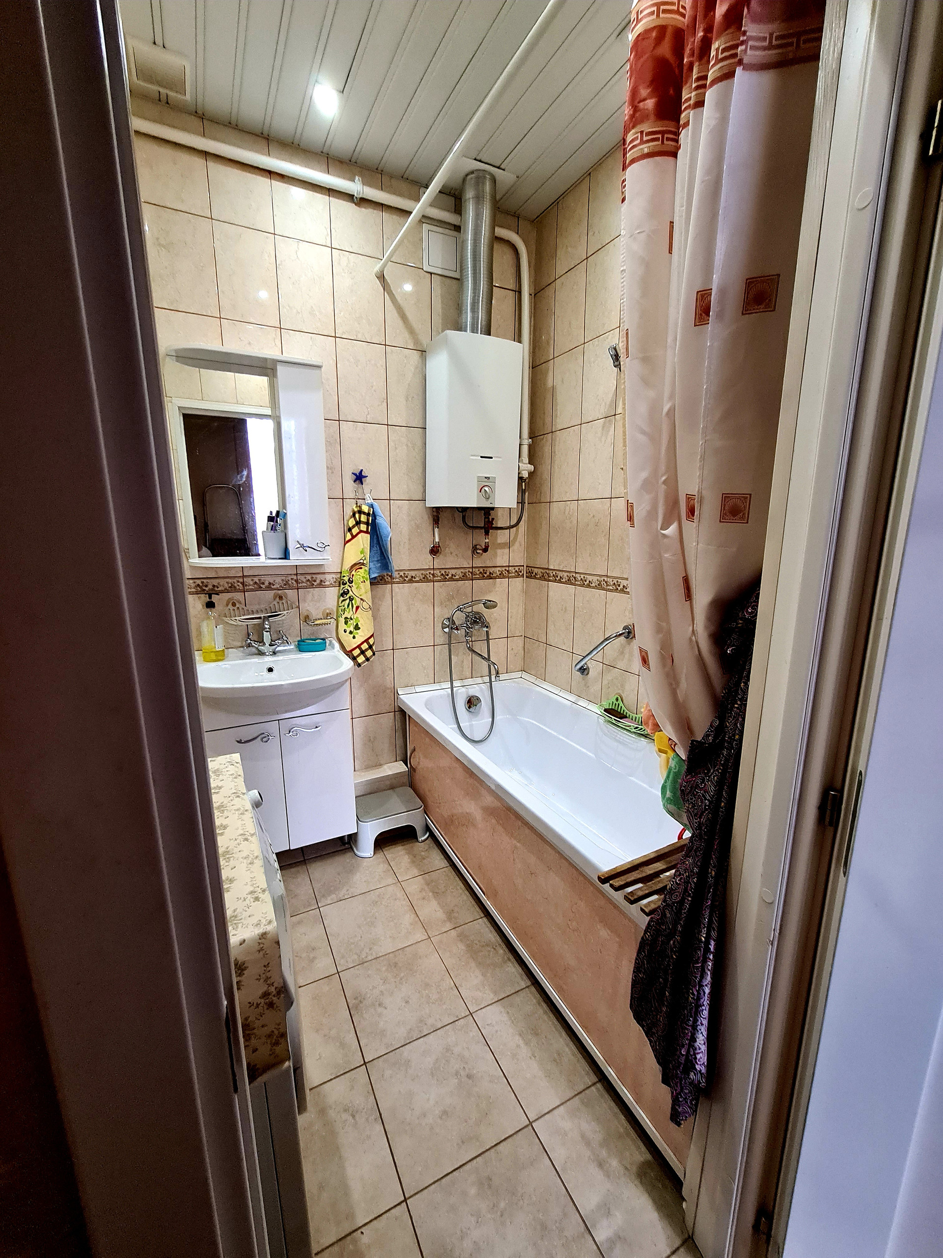 В ванной комнате и туалете выполнен ремонт, полы и стены кафель.