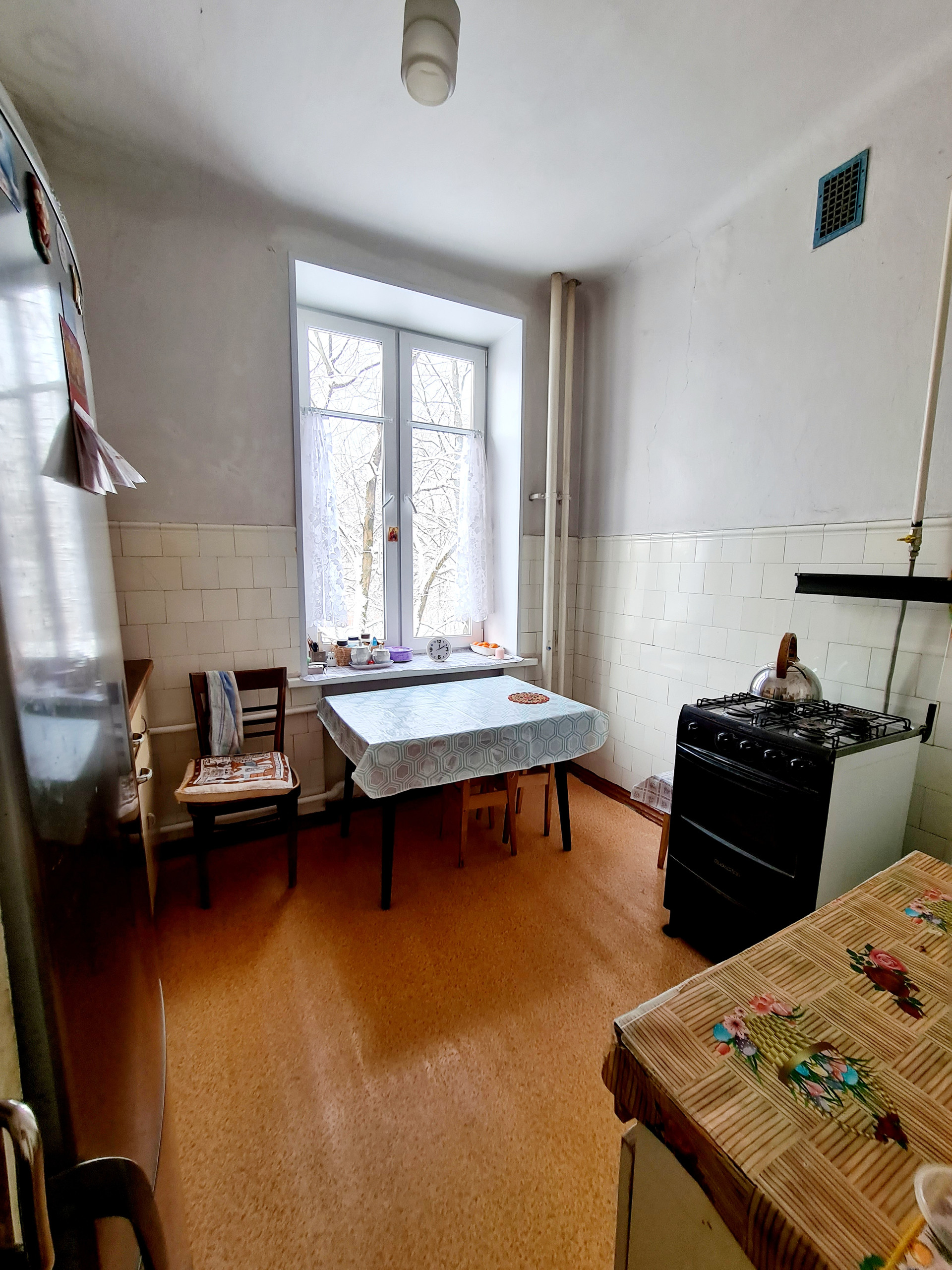 В продаже просторная, светлая и тёплая трёхкомнатная квартира в кирпичном сталинском доме 1954 г.п., ж/б перекрытия, газовая колонка, есть балкон.