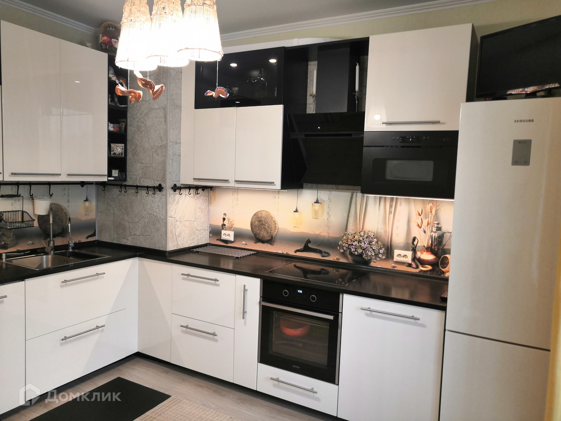 В квартире произведён дизайнерский ремонт с применением дорогостоящих материалов. При продаже остаётся вся мебель и бытовая техника.