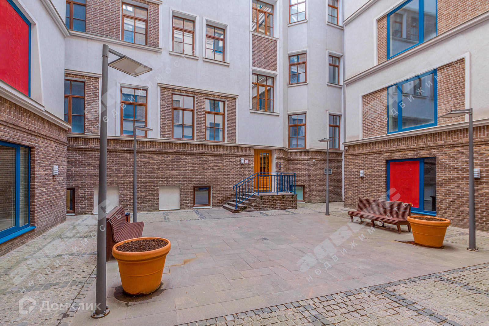 Два изолированных входа, панорамные окна выходят на тихий внутренний двор.