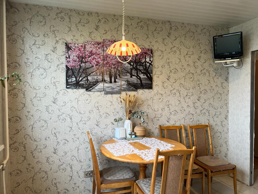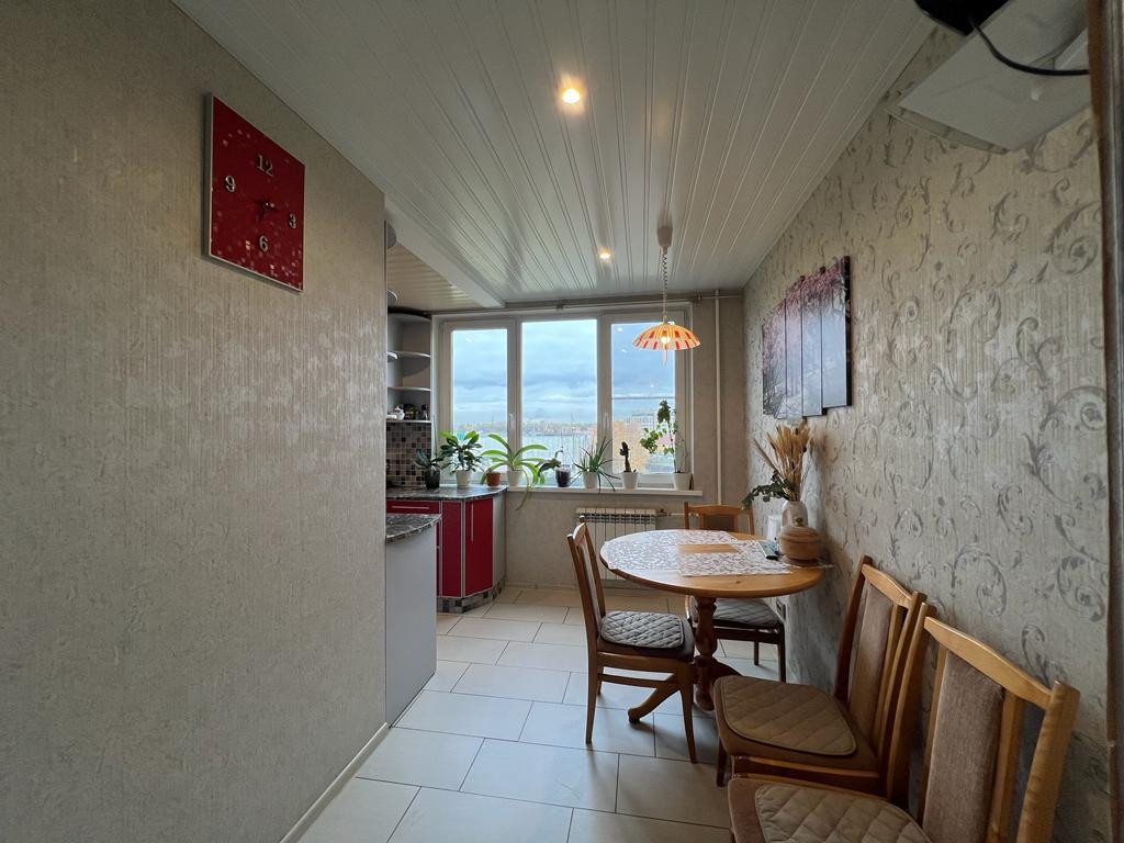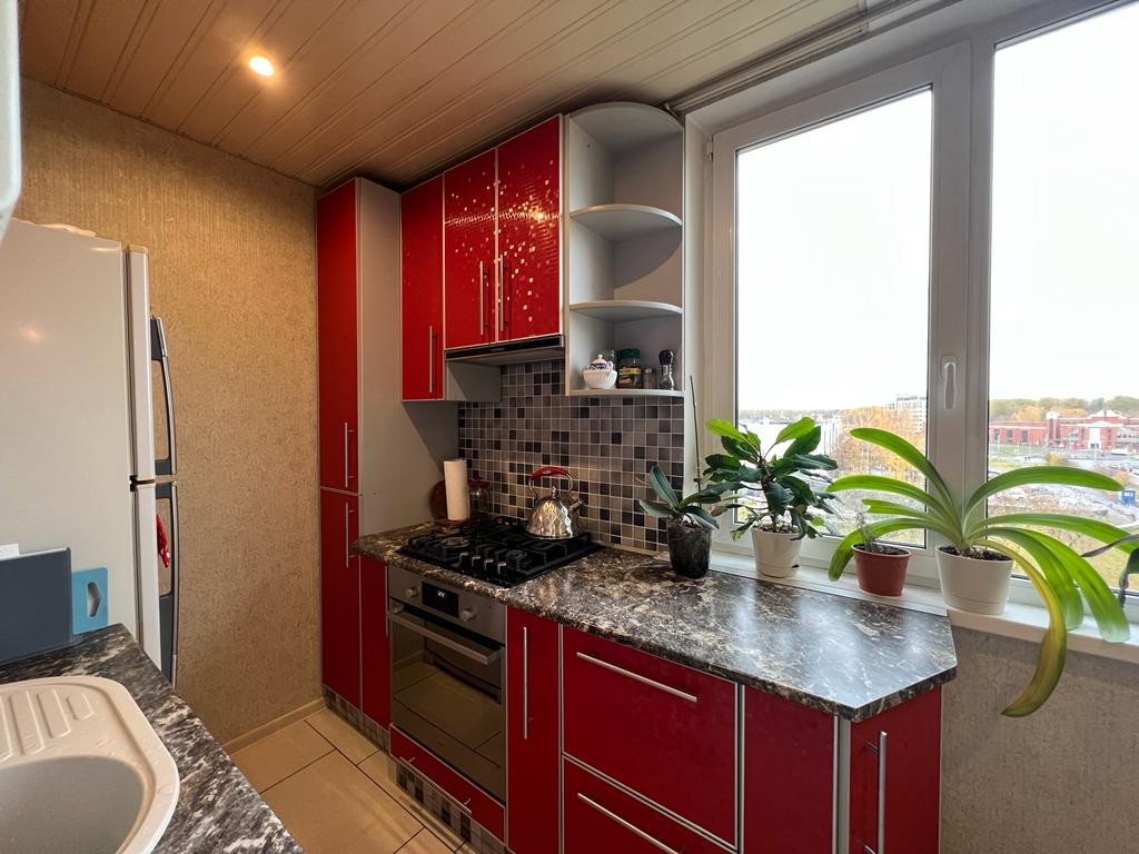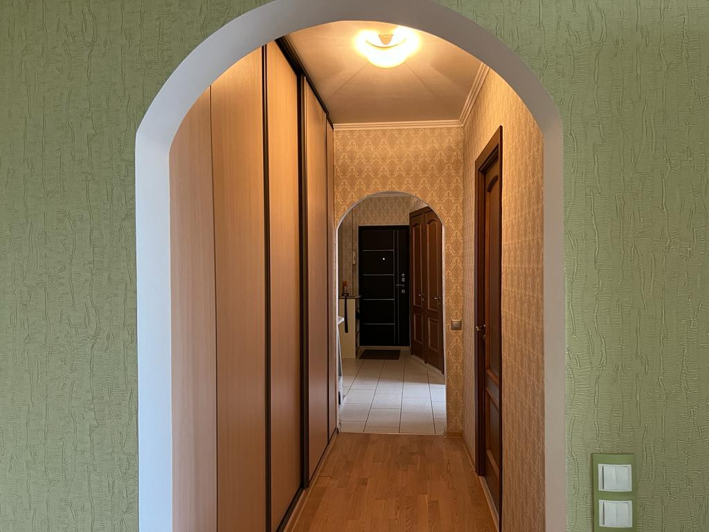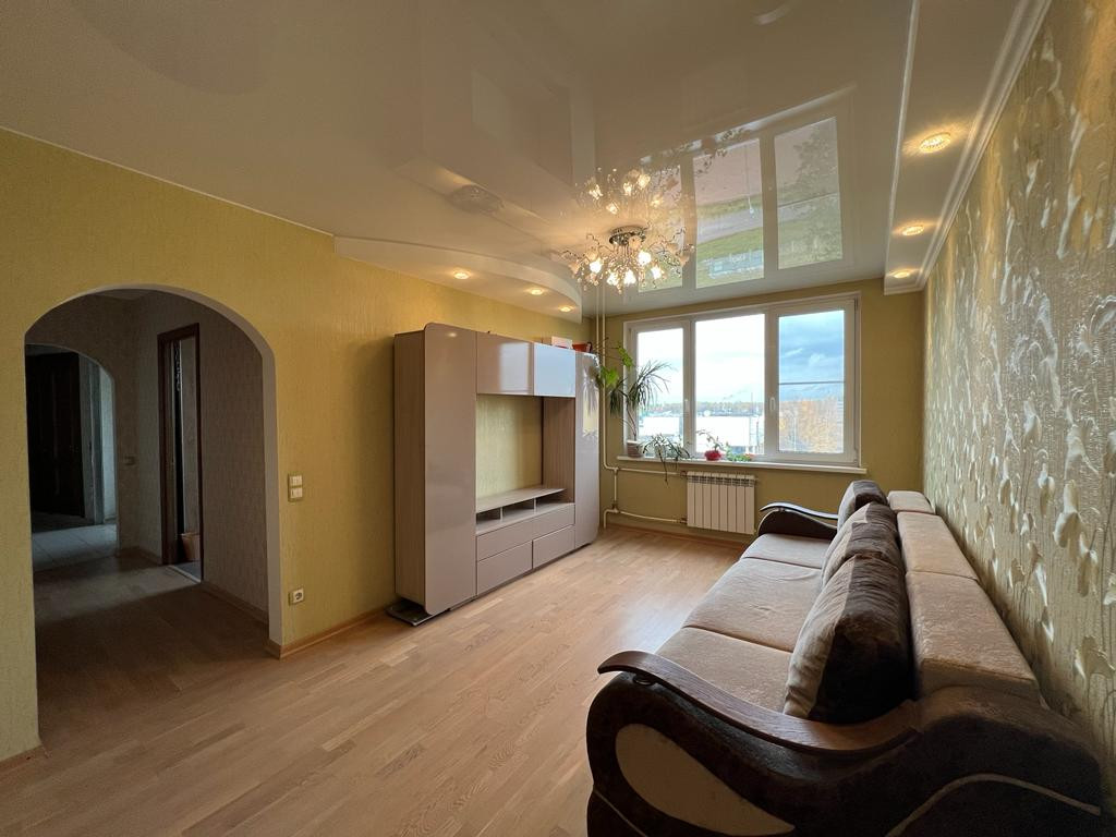 В квартире выполнен качественный ремонт - во всей квартире на окнах установлены стеклопакеты, произведена замена труб, батарей, выровнен пол, санузел - в кафеле, на кухне - кафель на полу, в комнатах - ламинат, на стенах обои. Квартира имеет двустороннюю планировку, из окон хороший вид - просторно, нет никаких домов перед окнами ( и не построят). В квартире остается кухонный гарнитур (в отличном состоянии, мало использовался), вместительный шкаф-купэ в прихожей.