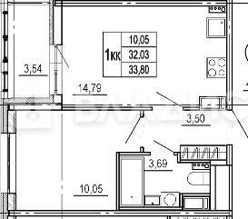 Общая площадь 33.8 м2