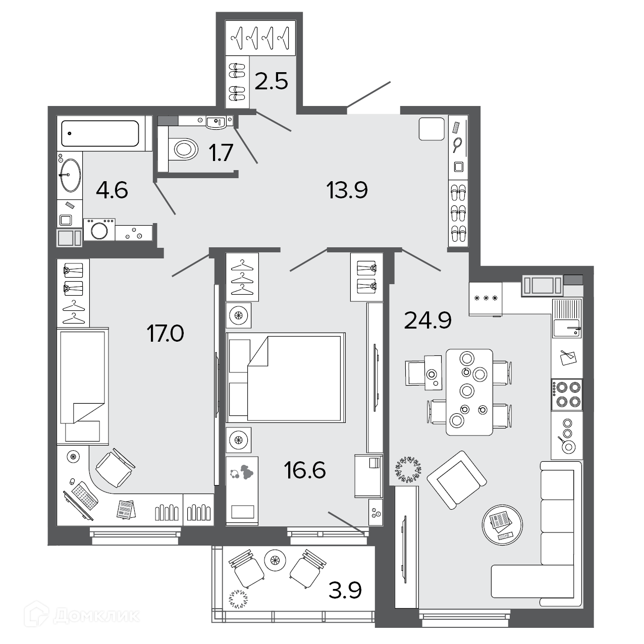Площадь кухни 24.9 м2