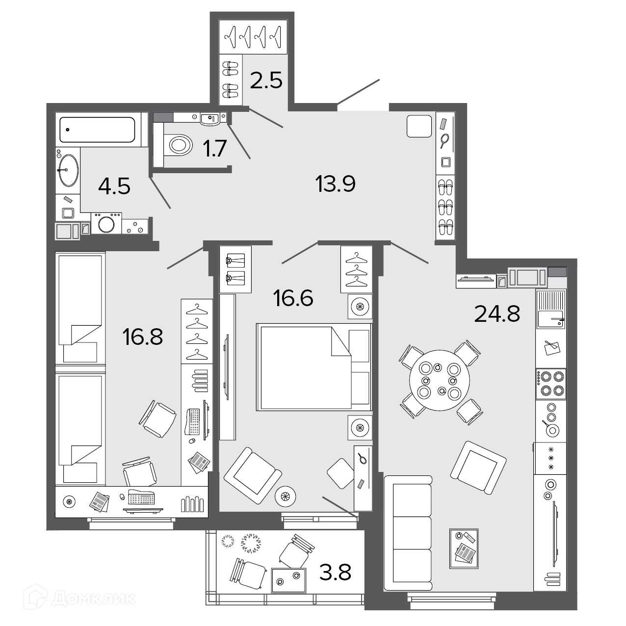 Площадь кухни 24.8 м2