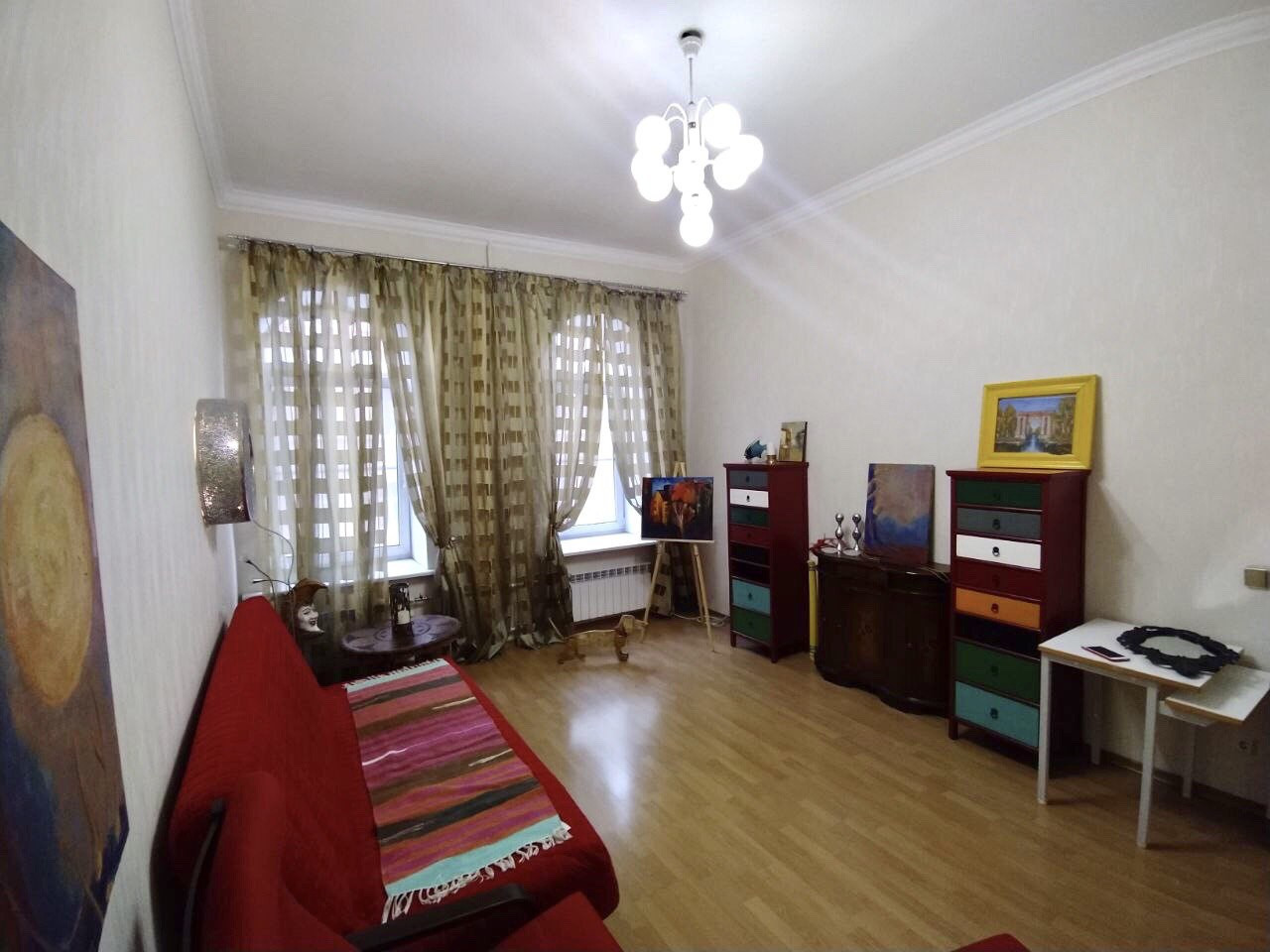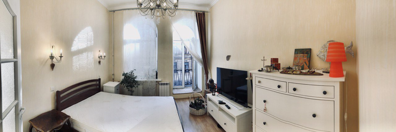Просторная светлая уютная 2-комнатная квартира с красивым видом из больших арочных окон и с балконом на втором этаже.