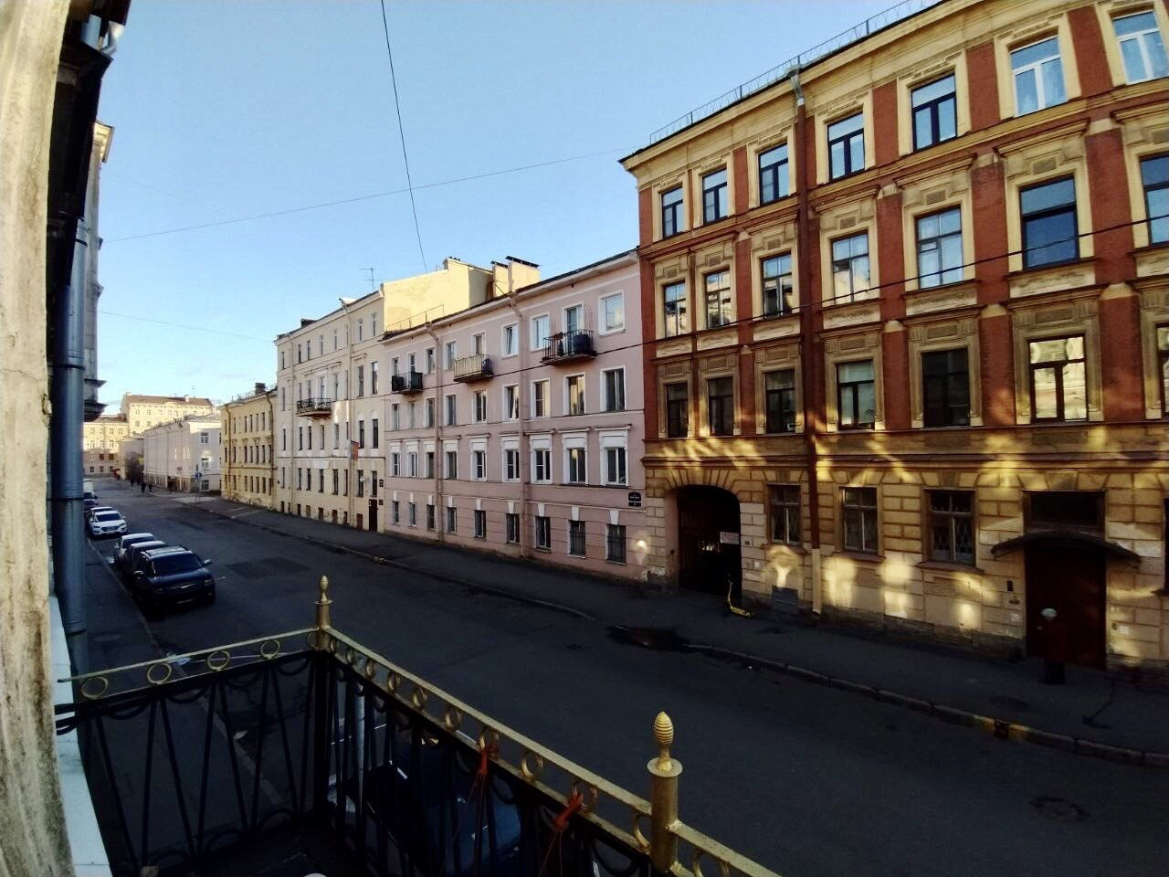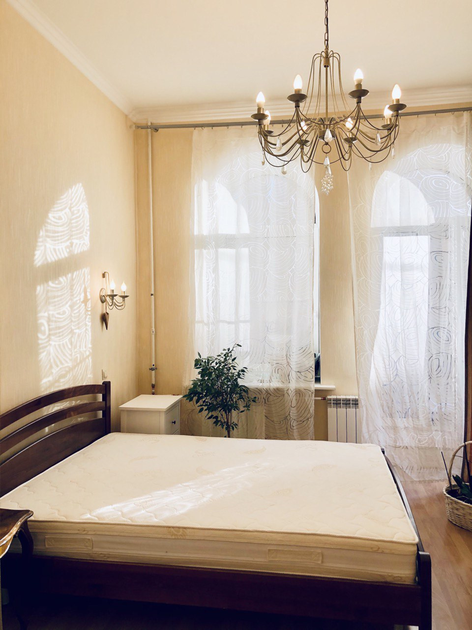 Окна большие арочные выходят на тихую улицу. Солнечная сторона.