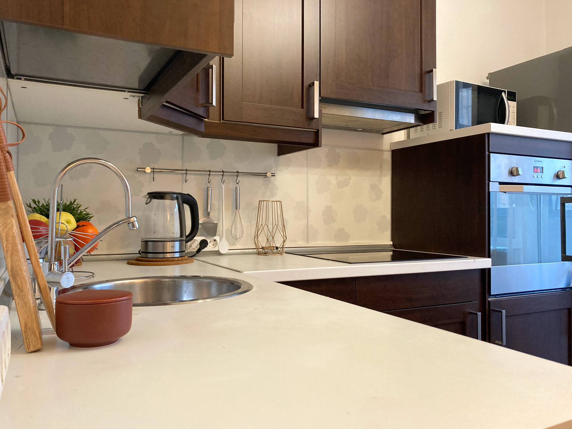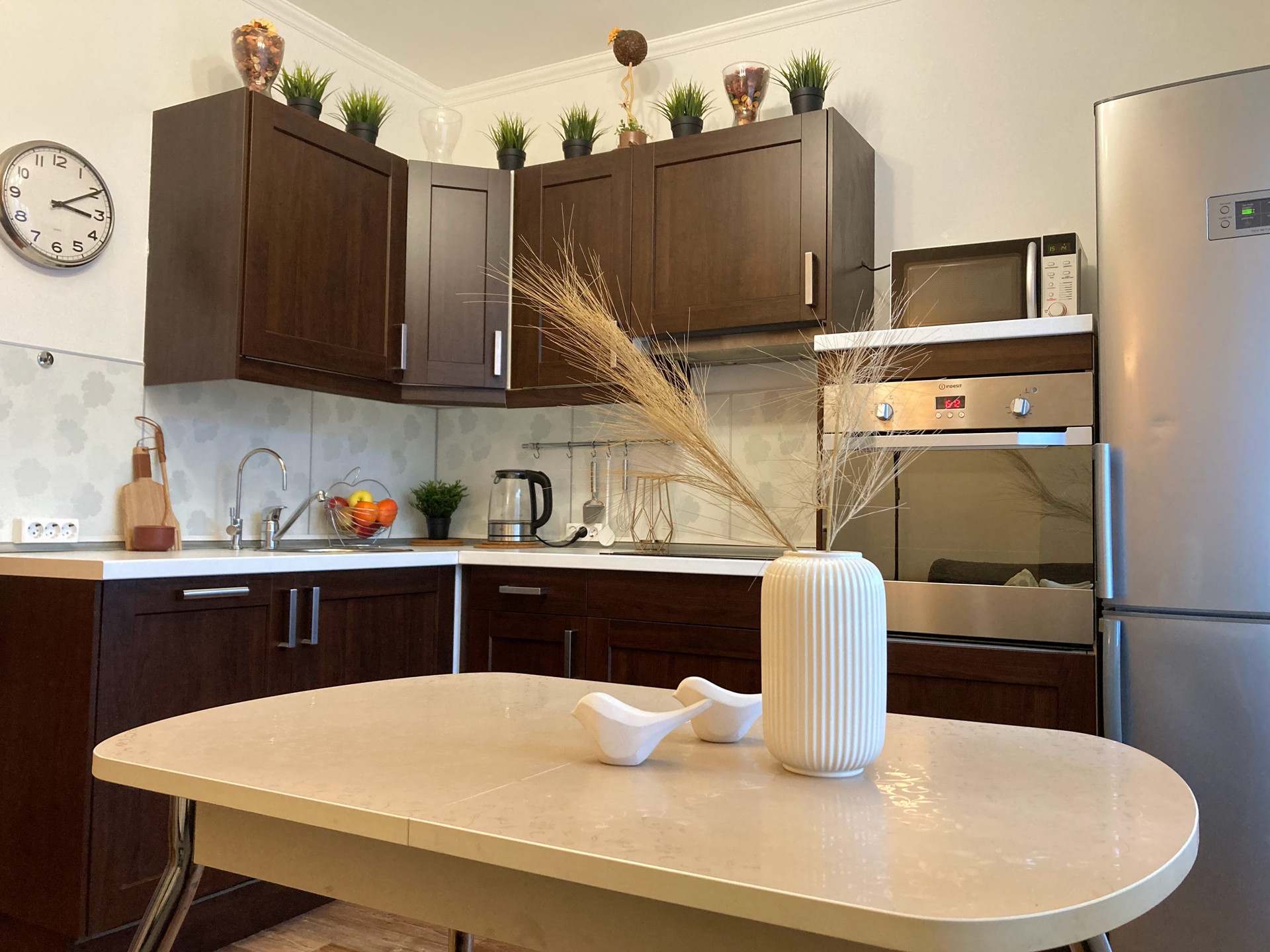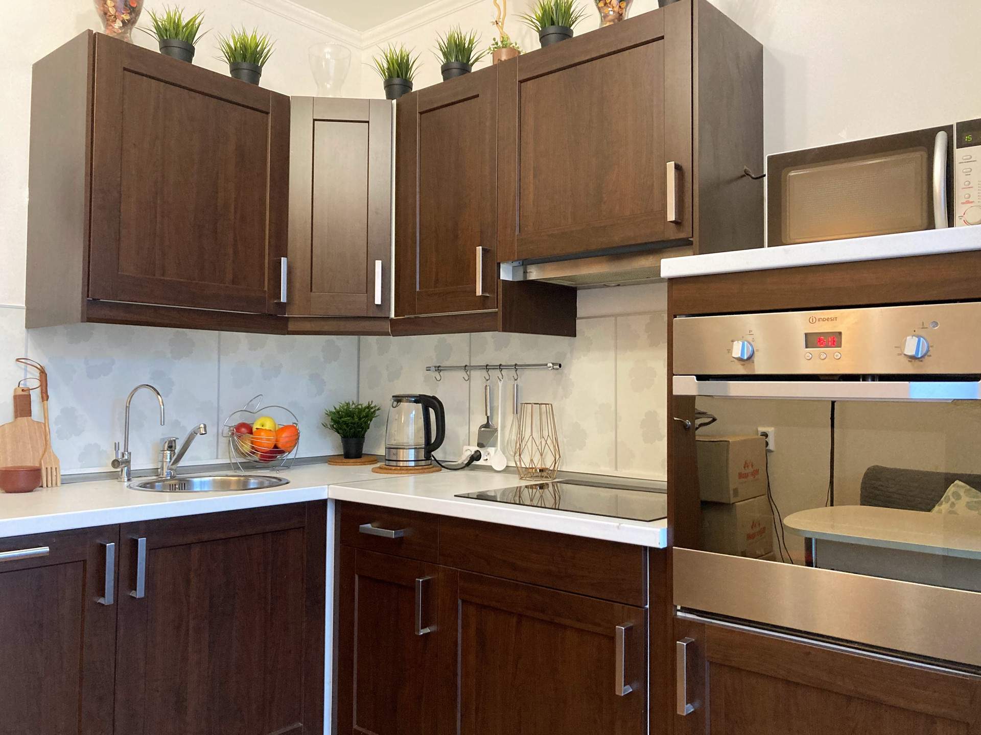 - Современная встроенная кухня (Посудомоечная Машина, Варочная Панель, Встроенный Духовой шкаф , Холодильник , Вытяжка, СВЧ, Стиральная машина ,Плазменный телевизор).