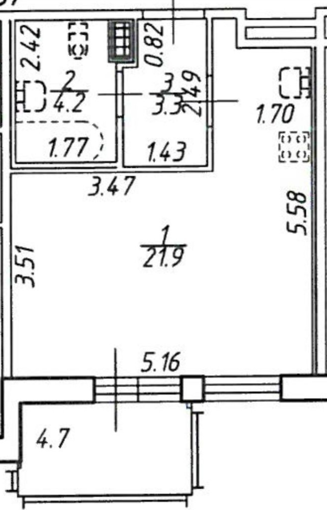 Высота потолков 2.7 м