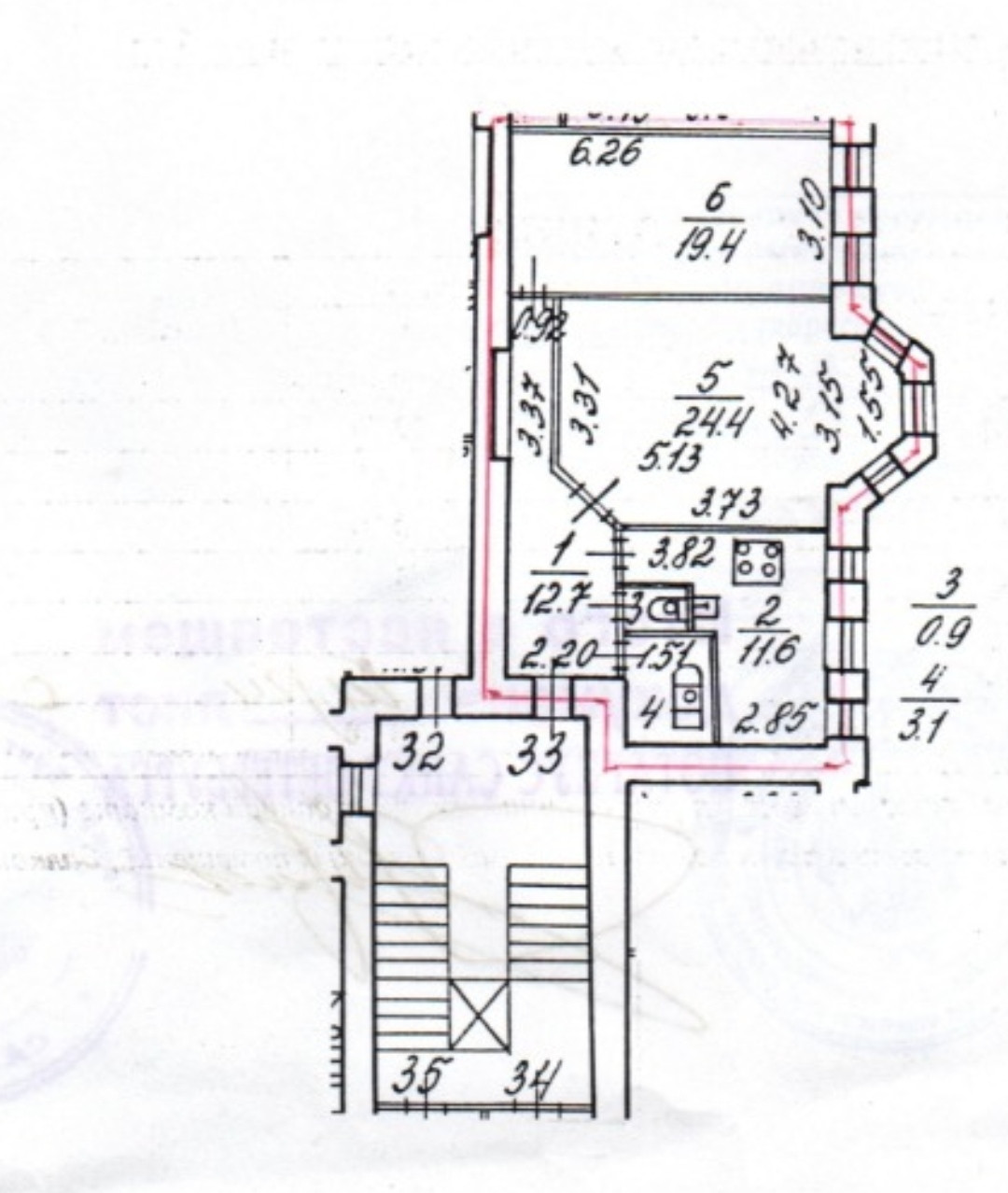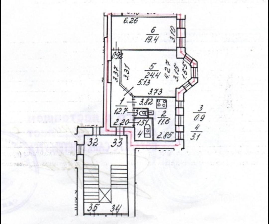 У квартиры очень удобная планировка: просторная гостиная 24,4 м2 с эркером ,  кухня 11,6 м2, спальня 19,4 м2 и большая прихожая 12,7 м2. Окна всех помещений выходят во двор . Вход в парадную с улицы.
