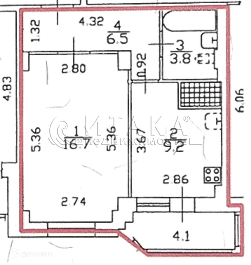 1-комнатная квартира, 36.2 м2, этаж 13 / 24, на продажу в Санкт-Петербурге, Комендантский проспект, 51к1
