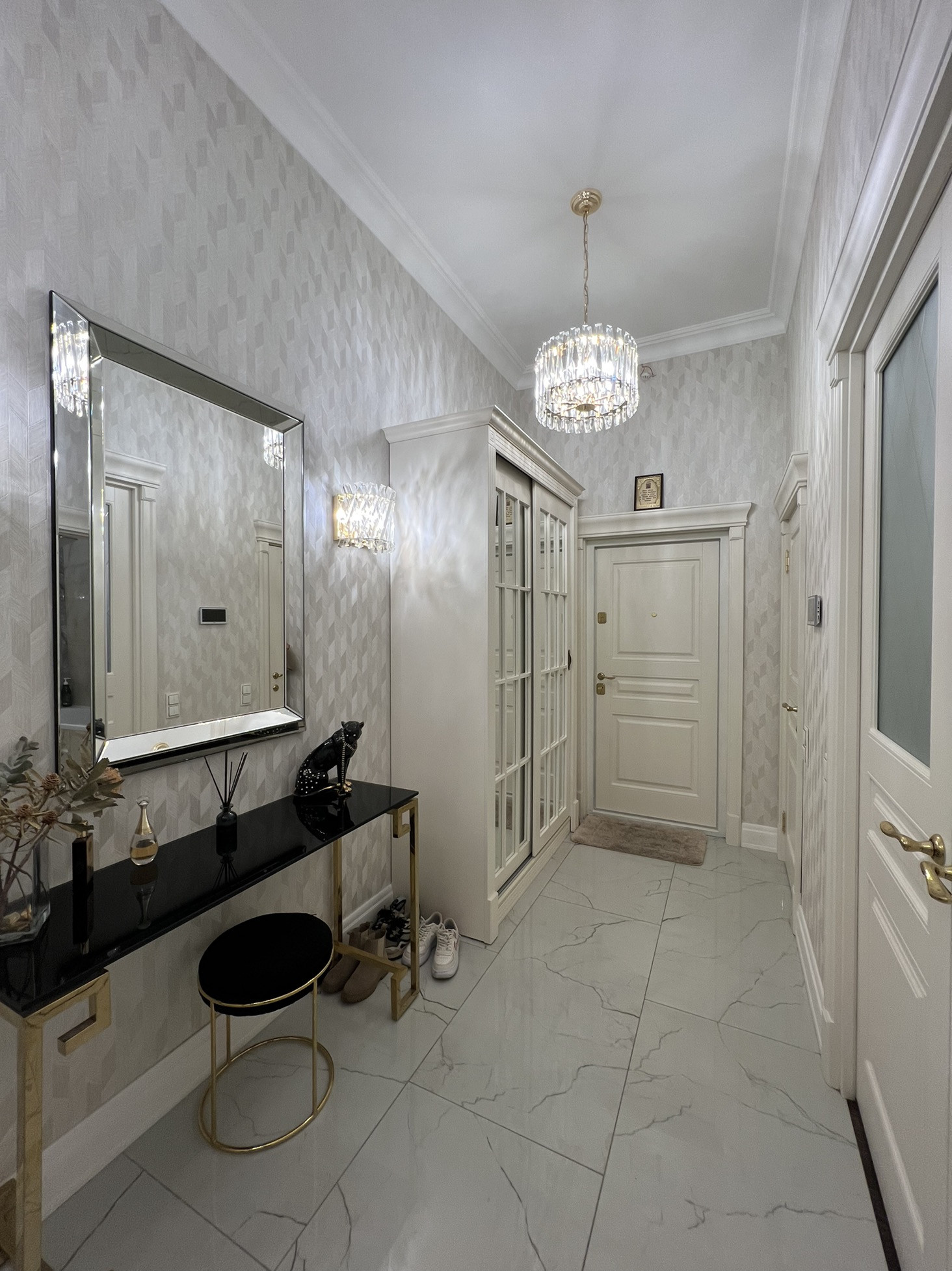 Общая площадь 74 м2 + балкон 7,3 м2 с панорамным остеклением. Ремонт делали для себя, использовали самые качественные материалы, на полу паркет и керамогранит. Дорогая мебель и предметы интерьера.