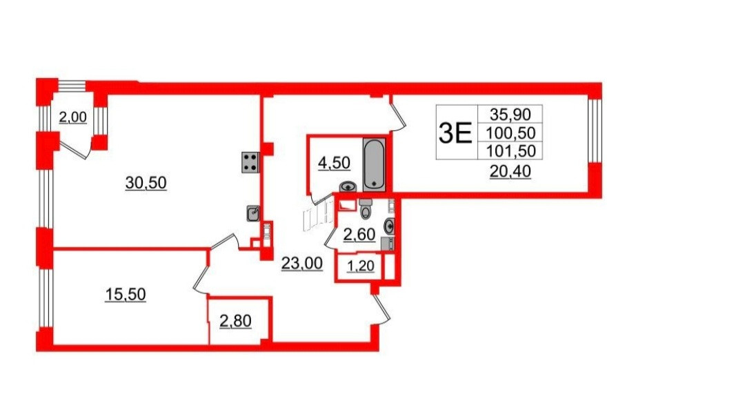Общая площадь 100.2 м2