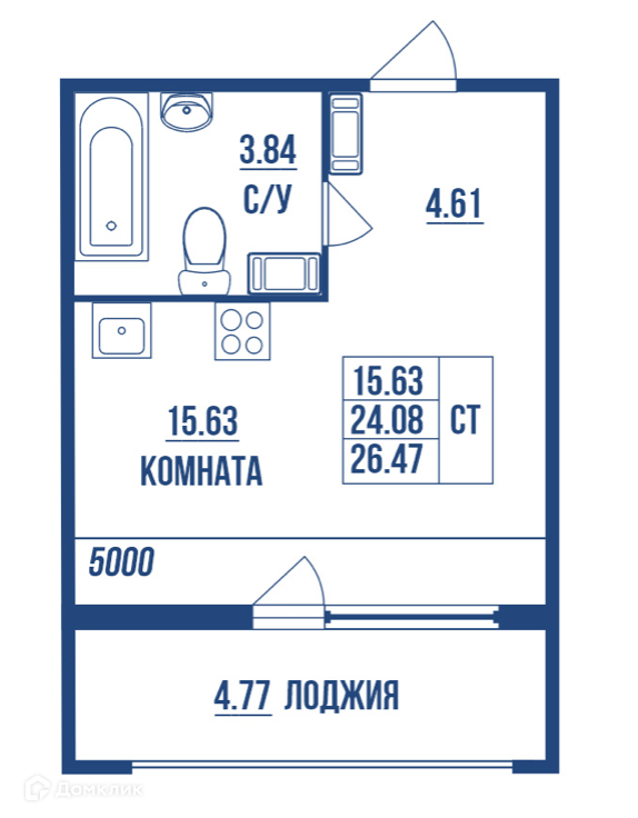 Общая площадь 26.47 м2