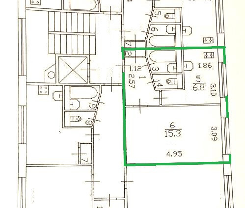 Жилая площадь 15.3 м2