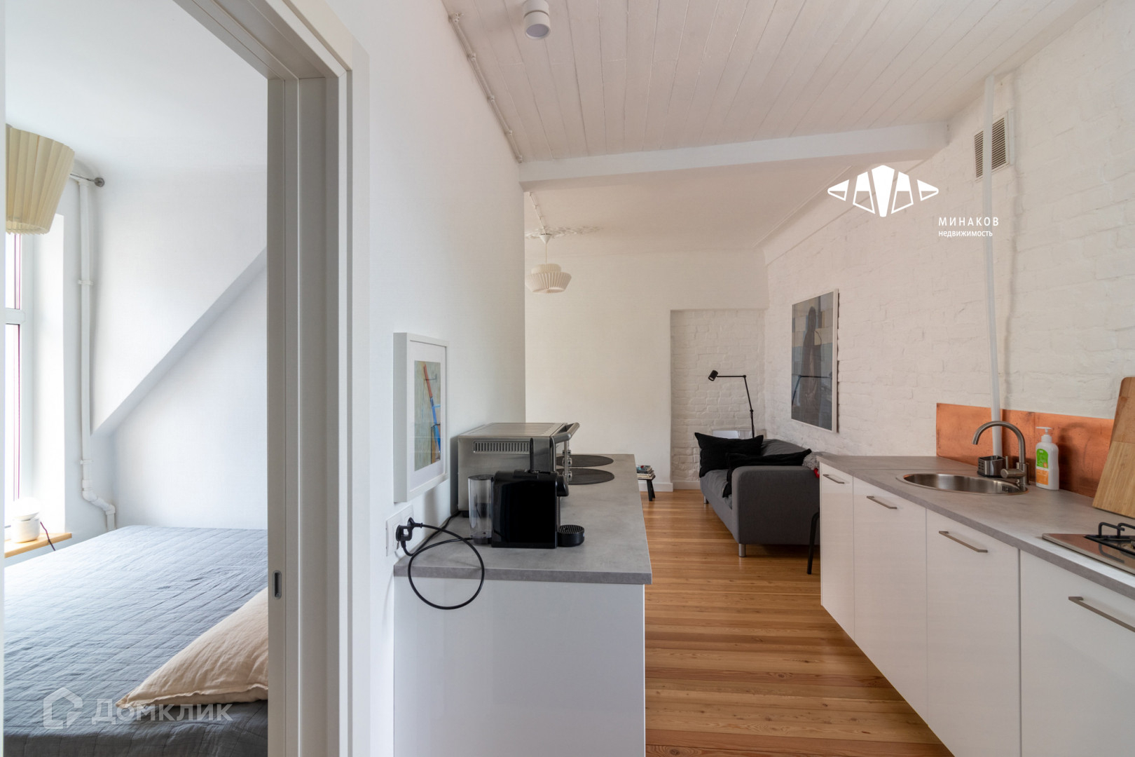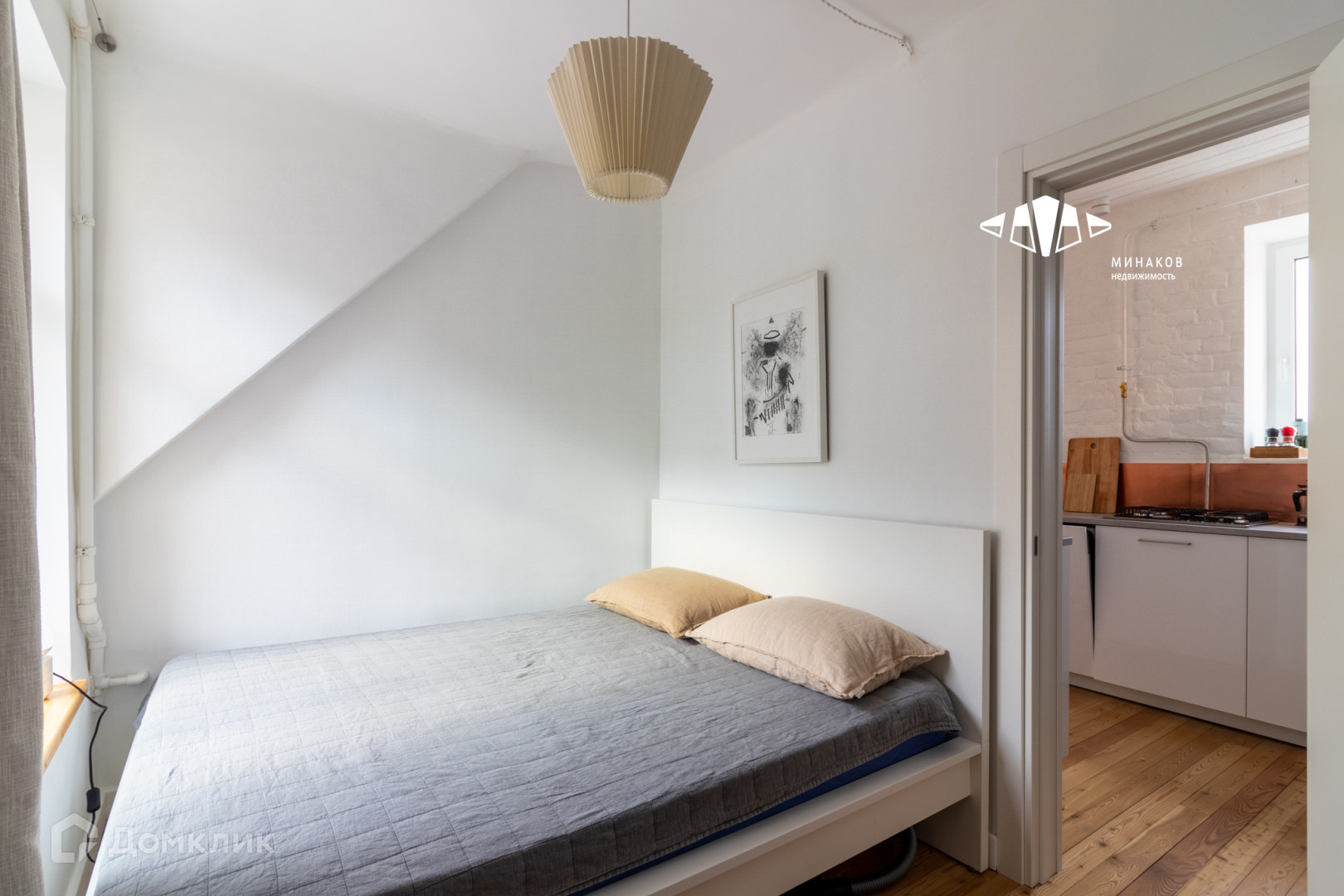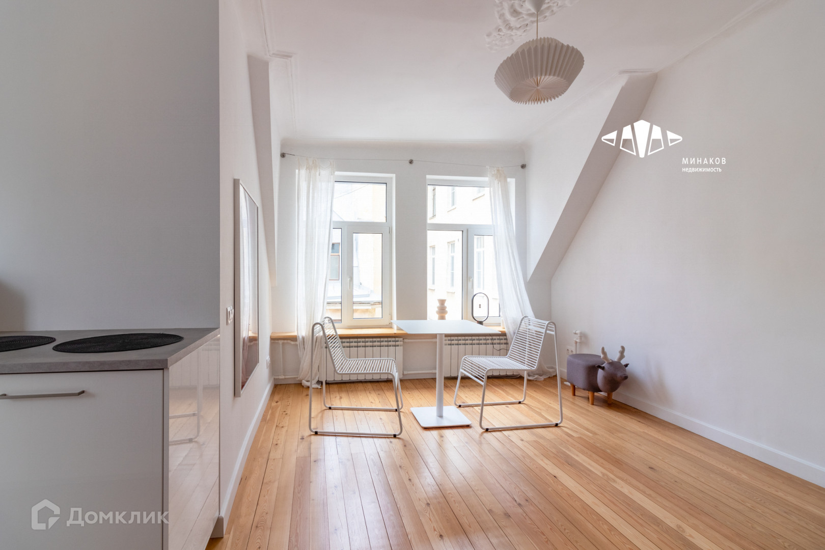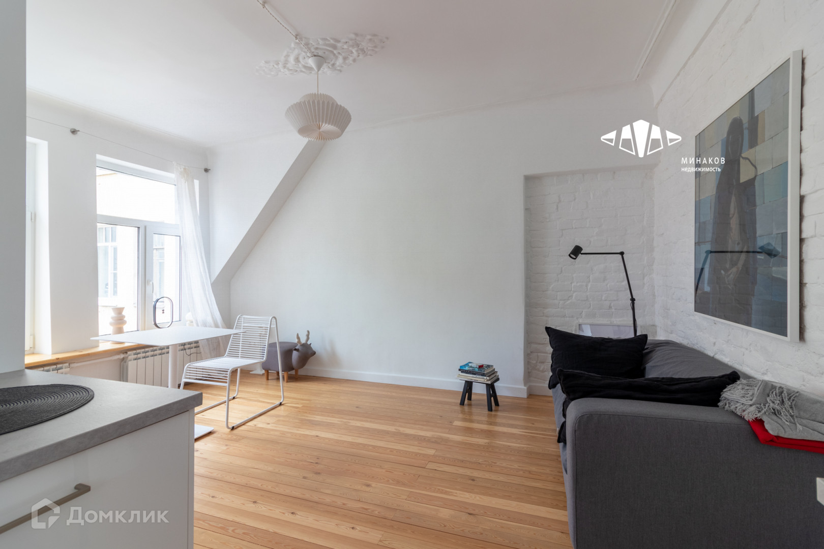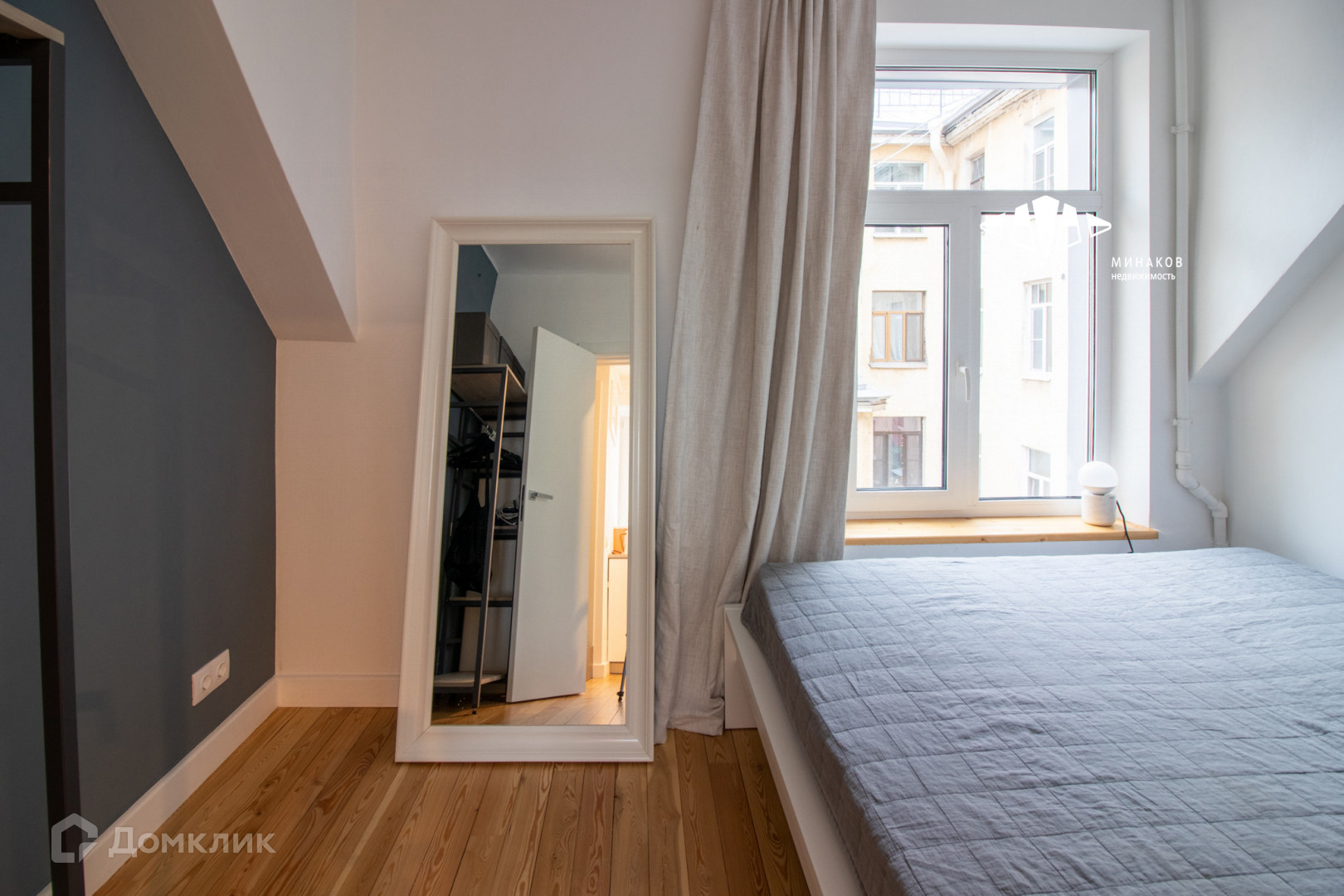 Залитая светом мансарда. Со свежим скандинавским ремонтом. Большие окна с широким подоконником, чтобы романтично коротать время. Милое окно на кухне с видом на деревья и фасады домов на Кирочной, в которое невольно поглядываешь, готовя обед.