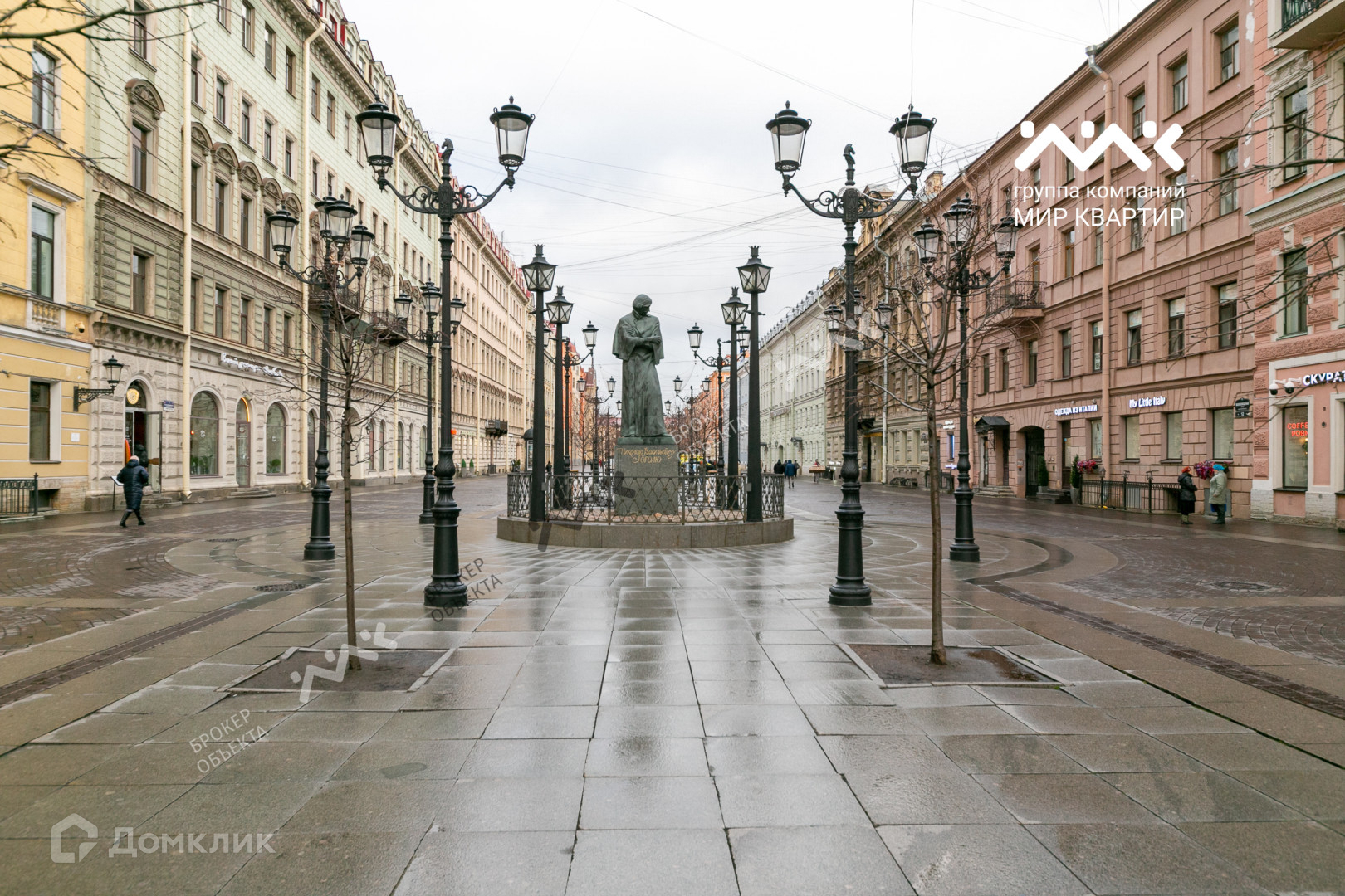 Здание находится в одном из красивейших мест Санкт-Петербурга. Это первая пешеходная улица нашего города с памятником Н.В. Гоголю, уникальными уличными часами.