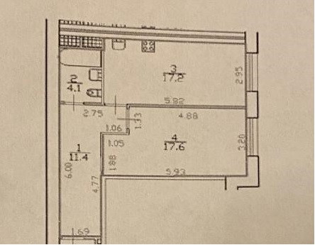 Жилая площадь 17.6 м2