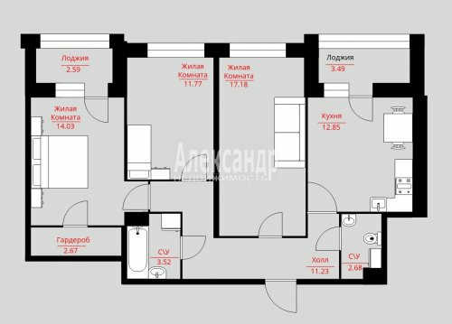 Количество комнат 3
