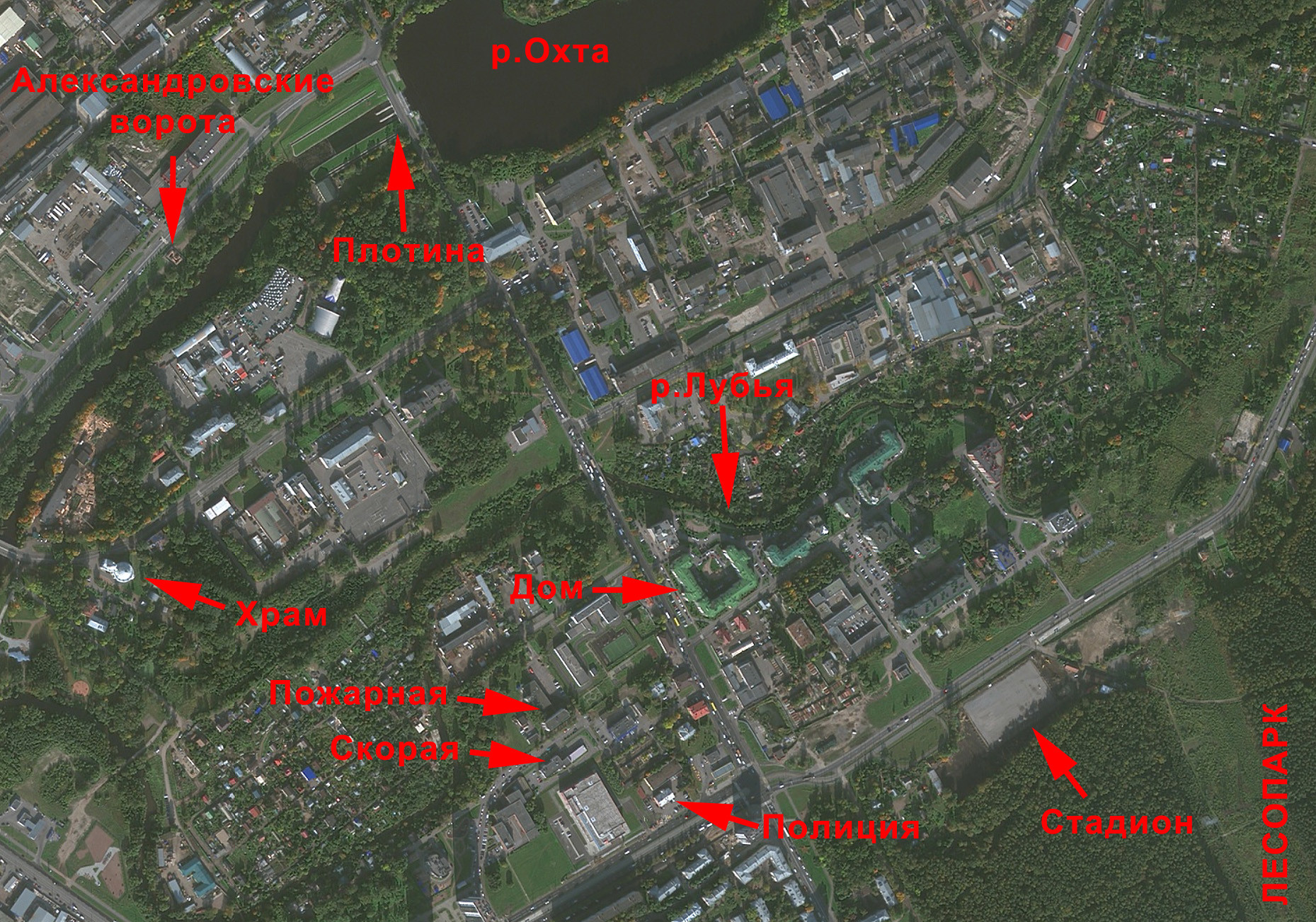 23) Ок.1 км до Александровских ворот – памятника архитектуры классицизма, расположенного на берегу реки Охты (1806, арх. Ф.И. Демерцов)