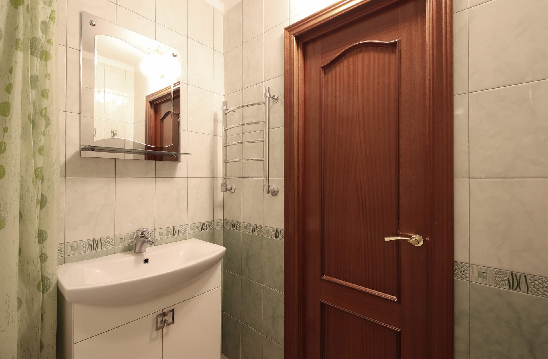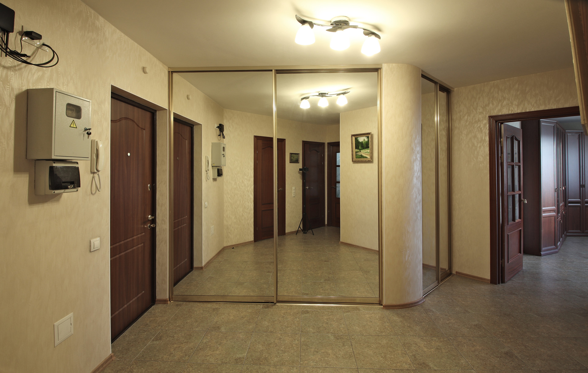 1.6) Просторный зеркальный коридор с полуколонной, создающий «вау-эффект», позволяющий удобно раздеваться сразу нескольким людям.