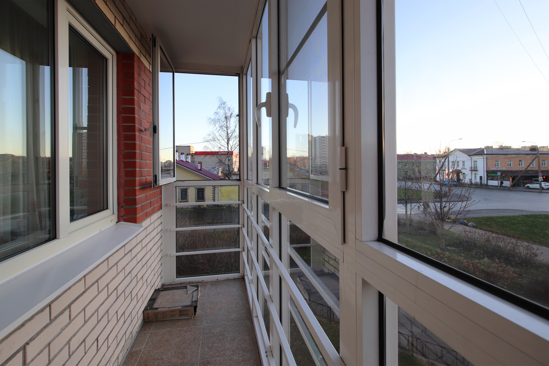 3) Панорамное остекление от пола лоджии с видом на 2 стороны.
