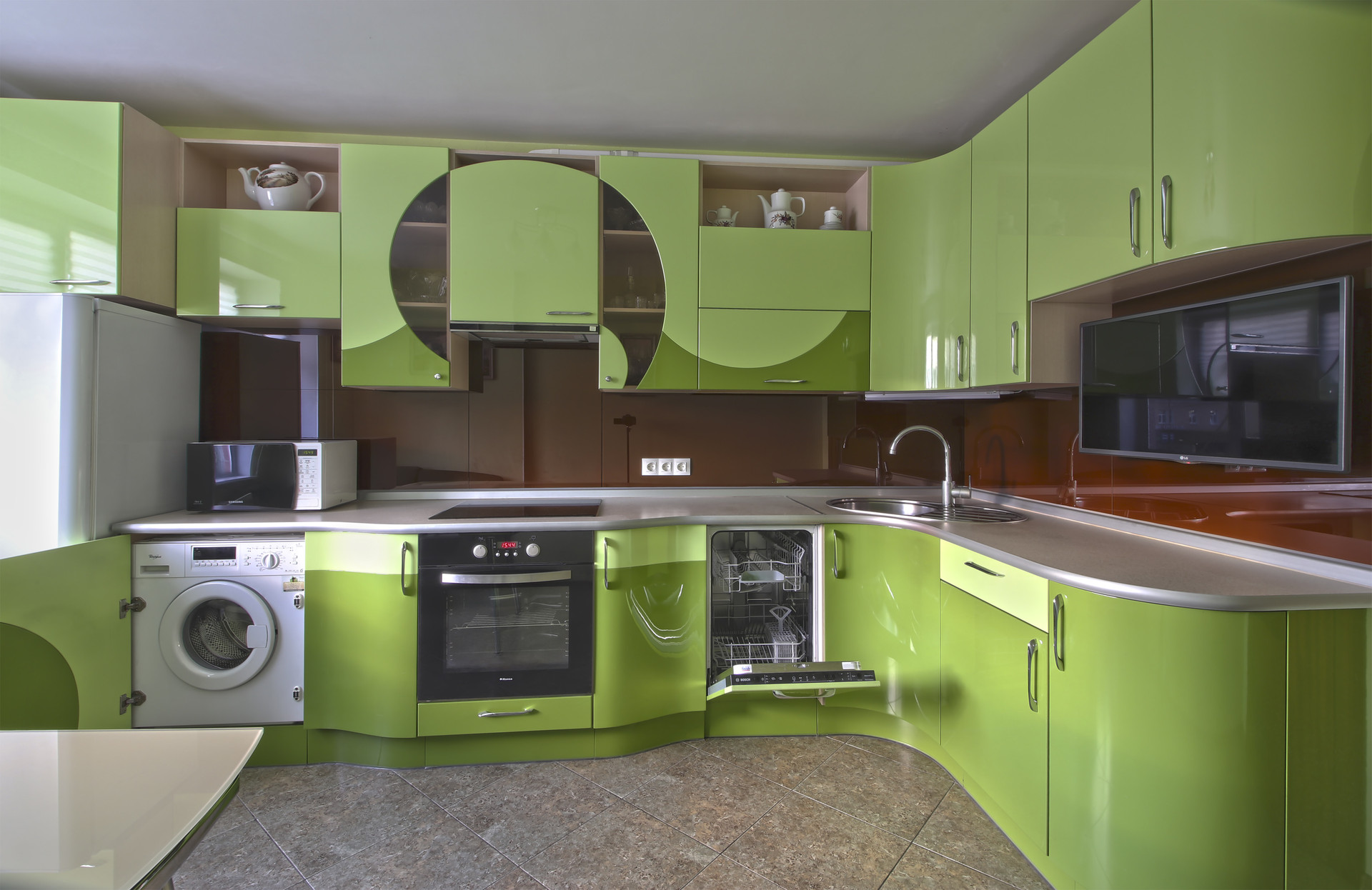 11) Кухонная мебель на заказ с округлыми формами, что уменьшает количество углов и делает вид дороже и интереснее.
