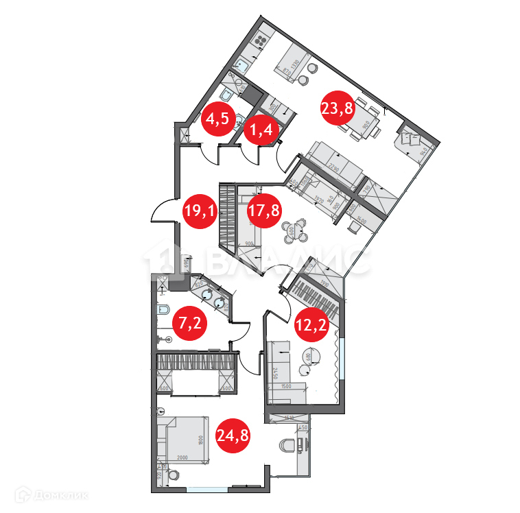 Площадь кухни 23.8 м2