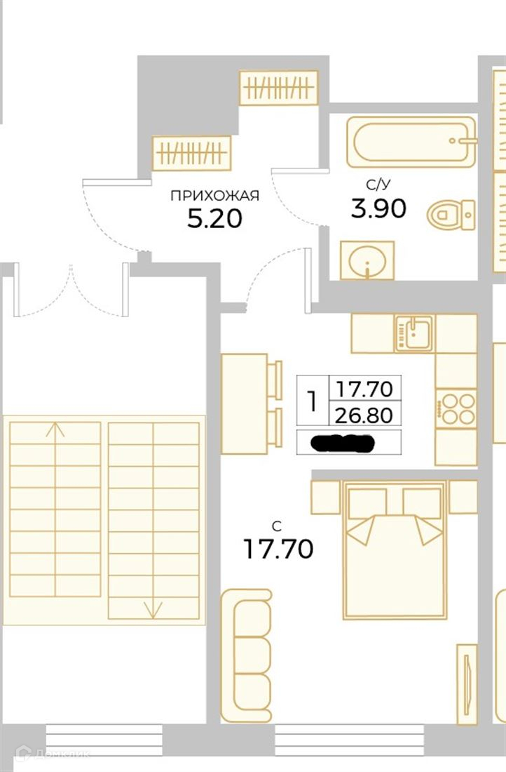Общая площадь 26.8 м2