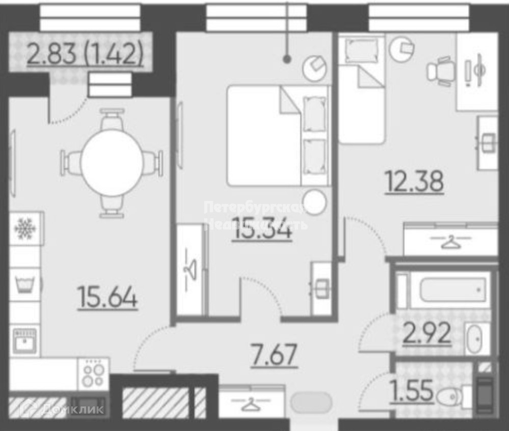 Санузел 1 раздельный