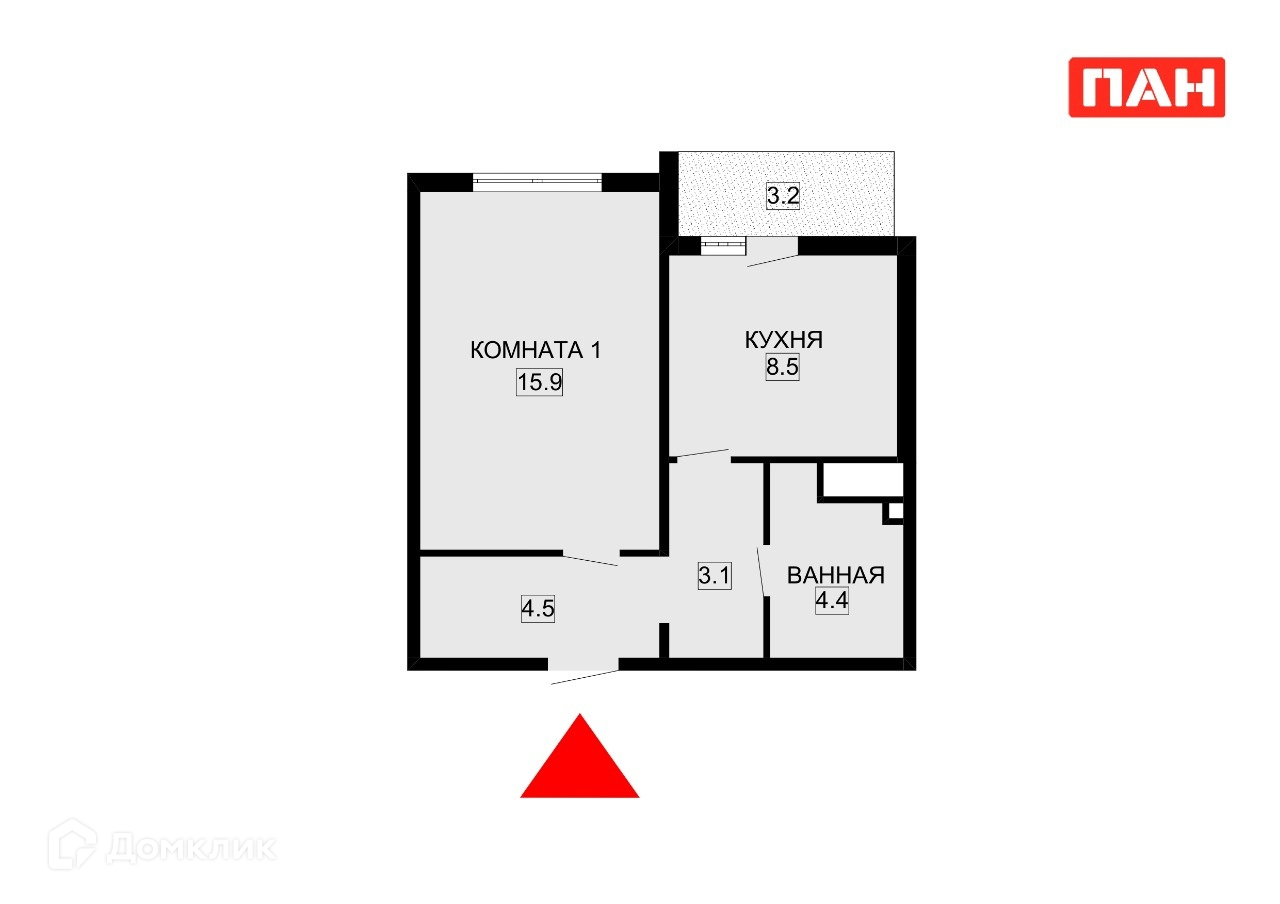Жилая площадь 15.9 м2