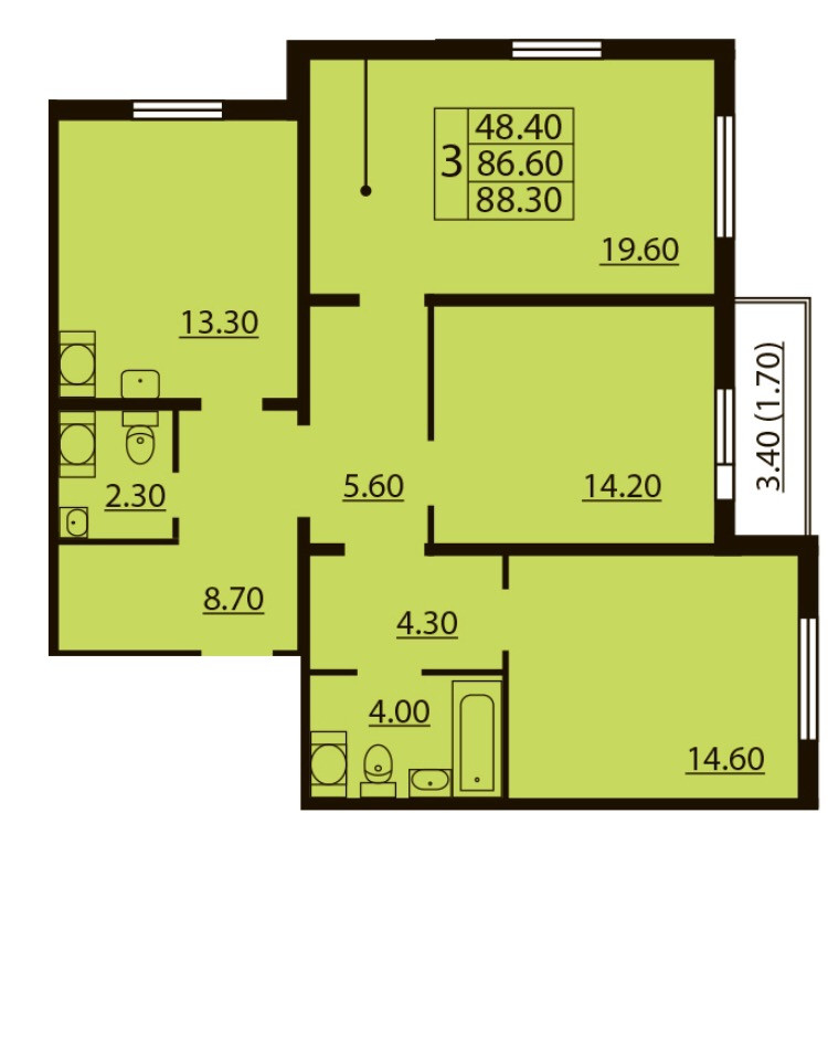 Общая площадь 86 м2