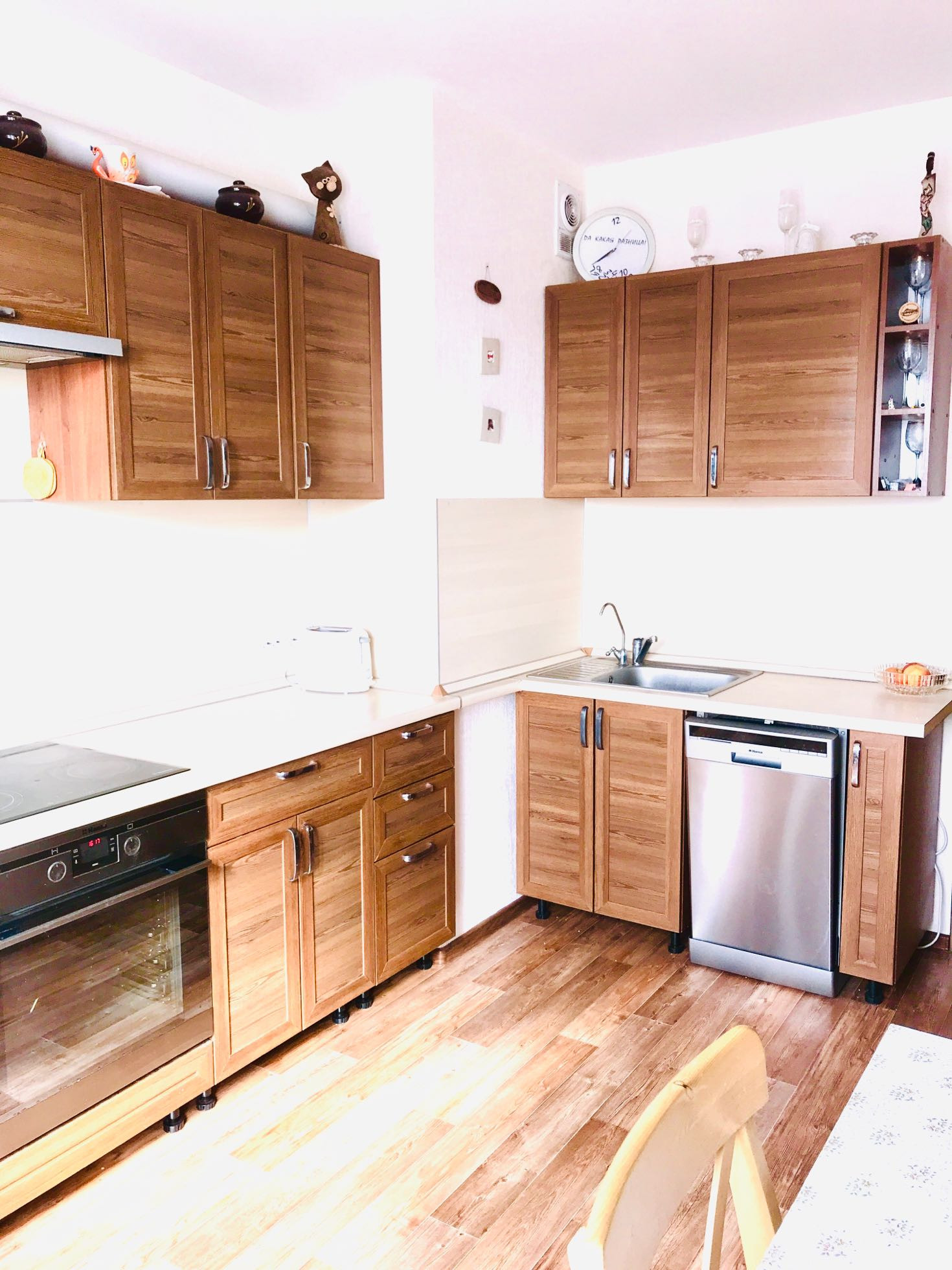 На кухне встроенная кухня с техникой Hansa, остаётся новому владельцу.