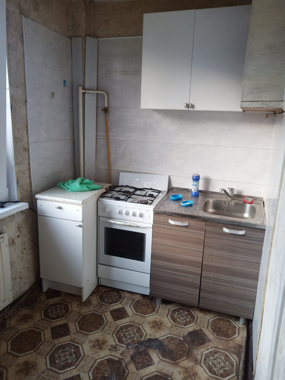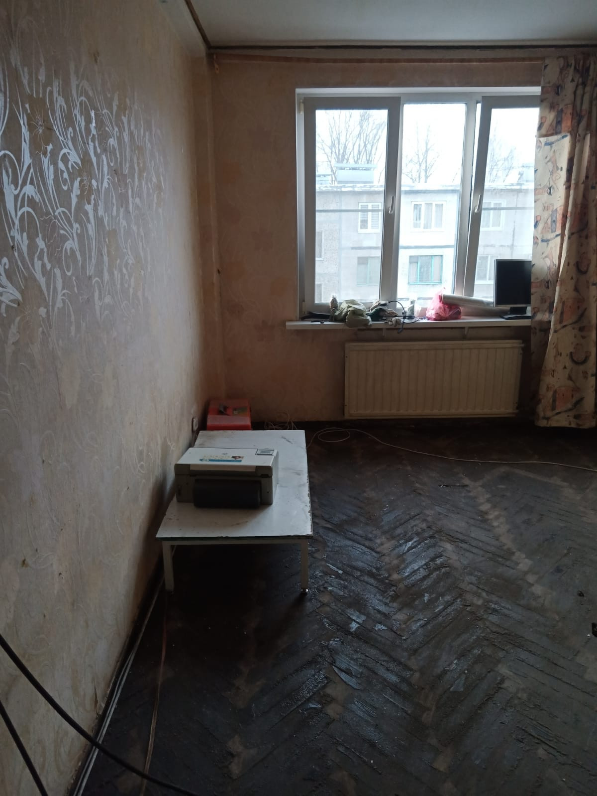 Квартира под ремонт. Начали демонтаж, но поменялись планы. В квартире поменены окна на пластиковые. Частично поменены трубы.