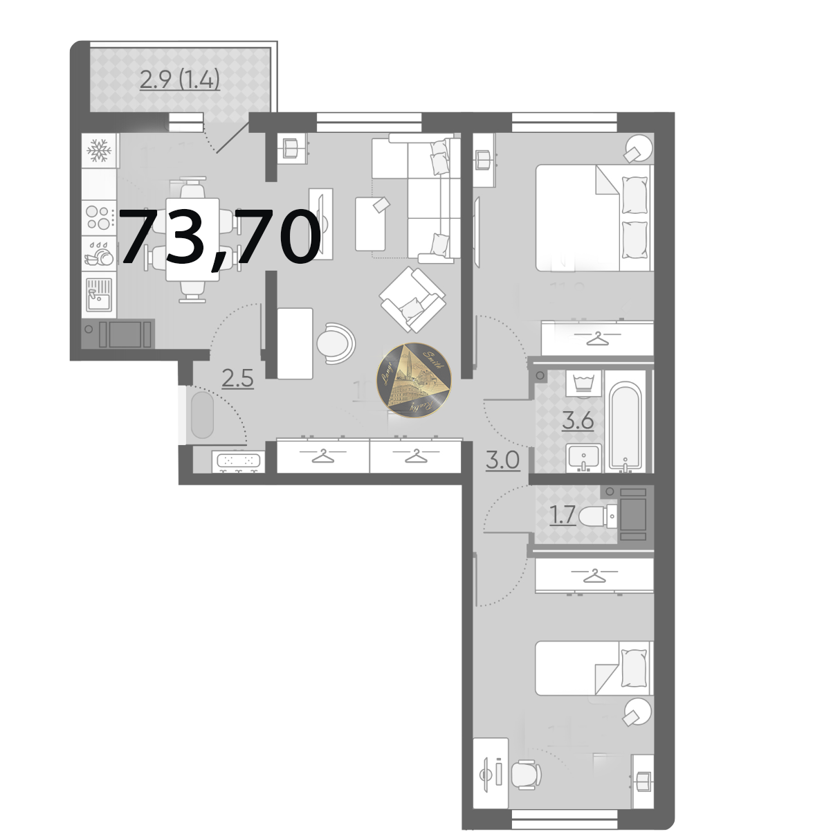 Общая площадь 73.7 м2